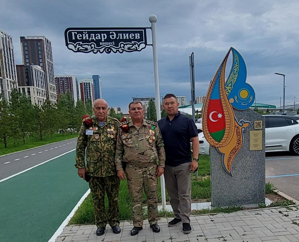 Azərbaycan Vətən Muharibəsi Veteranları İctimai Birliyinin (AVMVİB) nümayəndə heyəti Qazaxstan Respublikasına səfəri zamanı Astana şəhərinin mərkəzində yerləşən Ulu Öndər Heydər Əliyev adına küçəni və xatirə lövhəsinin ziyarət ediblər.