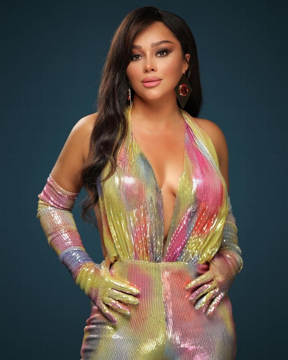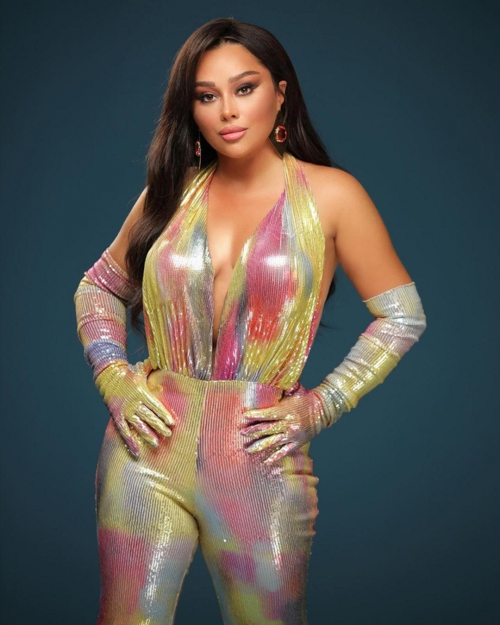 “İki sahil” xəbər verir ki, sənətçi rəngarəng tulumda kamera qarşısına keçib. O, geyimini əlcəkləri və iri sırğaları ilə tamamlayıb.