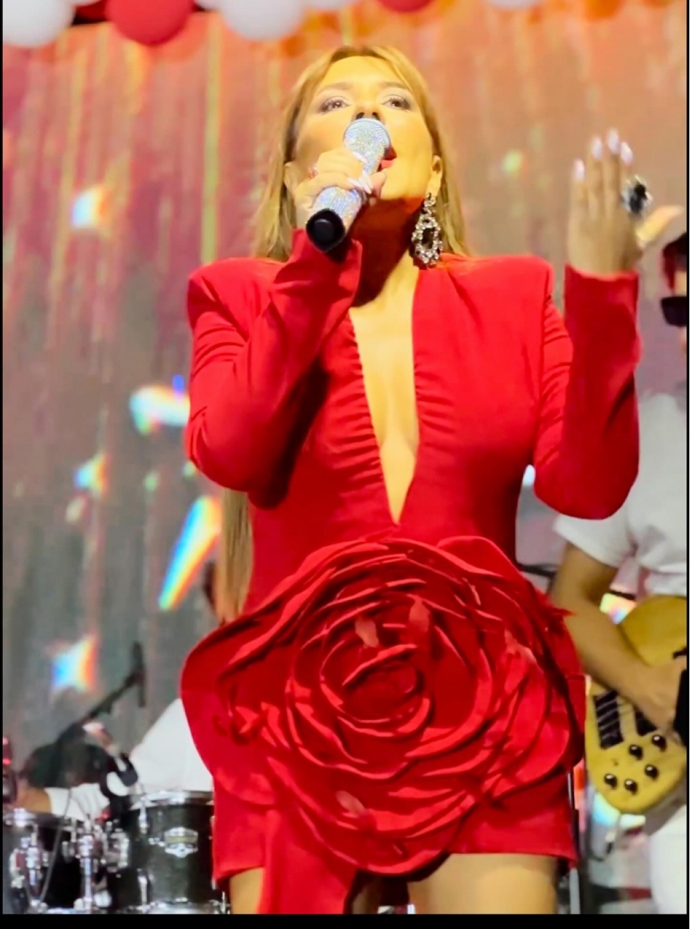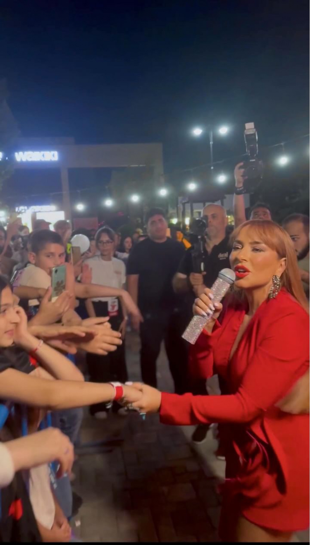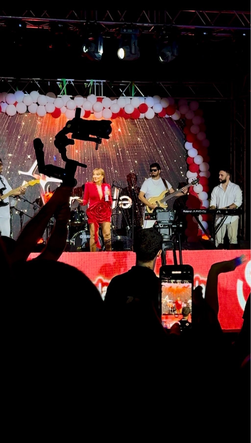 Pərəstişkarları pop ulduzla mahnıları birlikdə əzbərə söyləyiblər. Qırmızılara bürünən estrada ulduzu dinləyicilərinə xoş anlar yaşadıb.