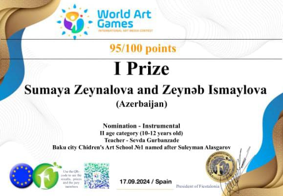 Bakı şəhəri Suleyman Ələsgərov adina 1 nömrəli Uşaq İncəsənət Məktəbinin şagirdləri növbəti dəfə beynəlxalq müsabiqədə Azərbaycanı layiqincə təmsil ediblər.