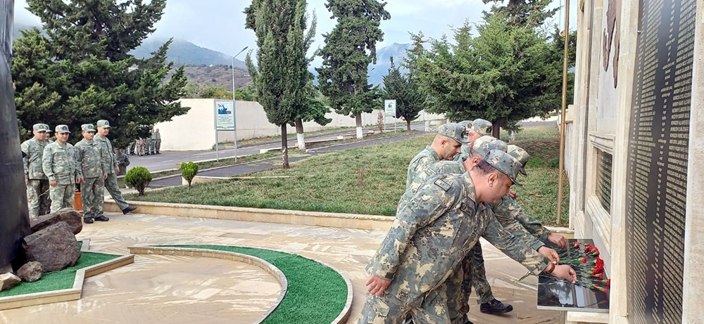 Silsilə tədbirlər çərçivəsində Şəhidlər xiyabanlarını ziyarət edən hərbi qulluqçular şəhid məzarlarının üzərinə gül dəstələri qoyaraq Azərbaycan Respublikasının azadlığı, ərazi bütövlüyü və suverenliyi uğrunda canlarından keçən əziz soydaşlarımıza öz ehtiramlarını ifadə ediblər.