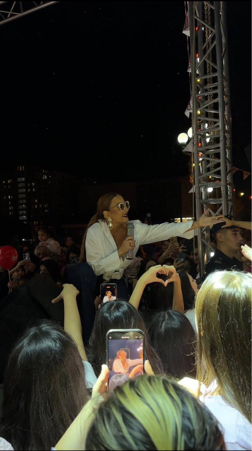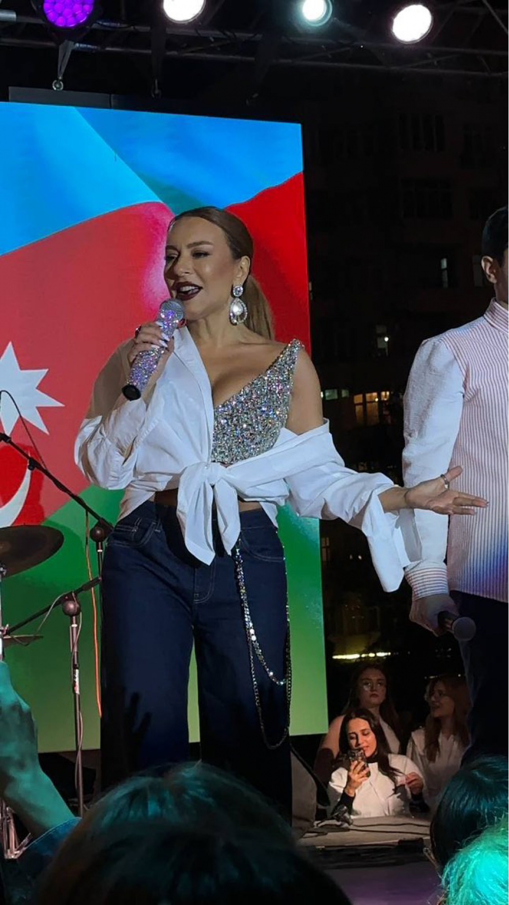 Estrada ulduzu ara-sıra pərəstişkarları ilə səhnədən həmsöhbət olub və onlarla fotolar çəkdirib.