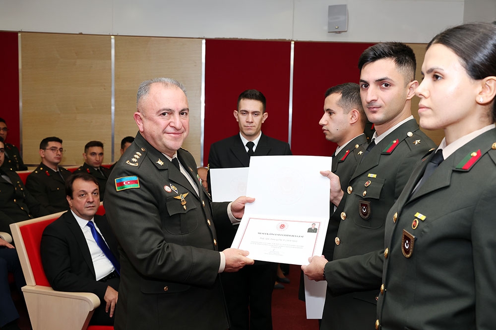 Sonda təhsilini uğurla başa vuran Azərbaycan Ordusunun hərbi qulluqçusuna və digər məzunlara sertifikatlar təqdim olunub.