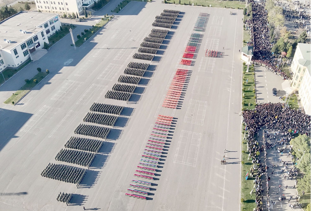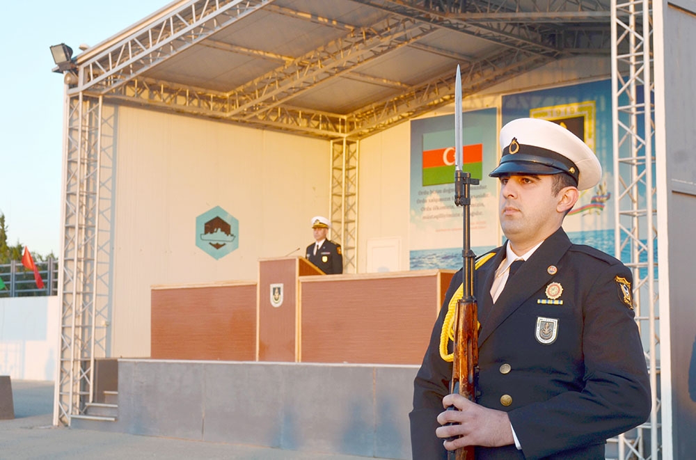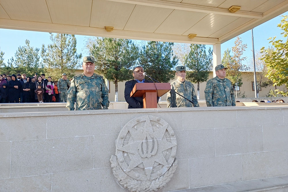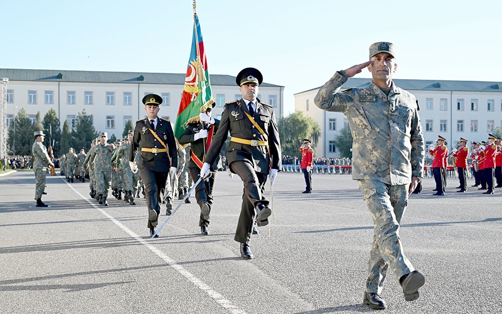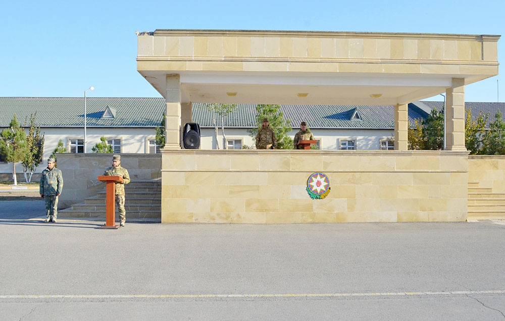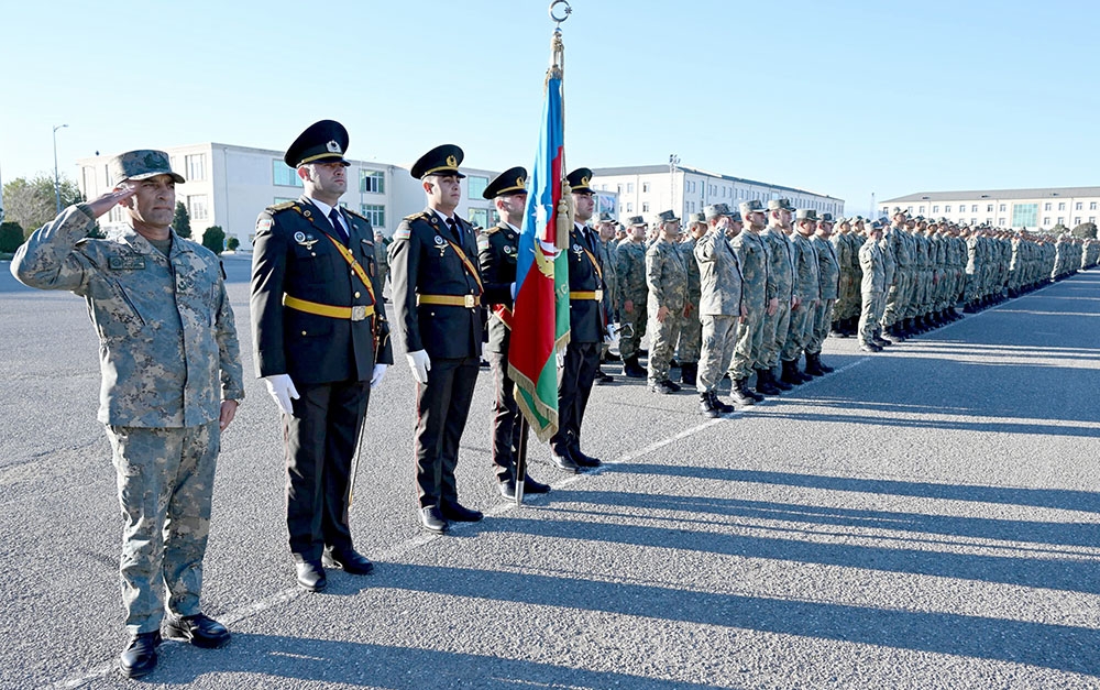 Hərbi orkestrin müşayiəti ilə döyüş bayrağının təntənəli surətdə sıra meydanına gətirilməsindən sonra tədbirlər açıq elan olunub.