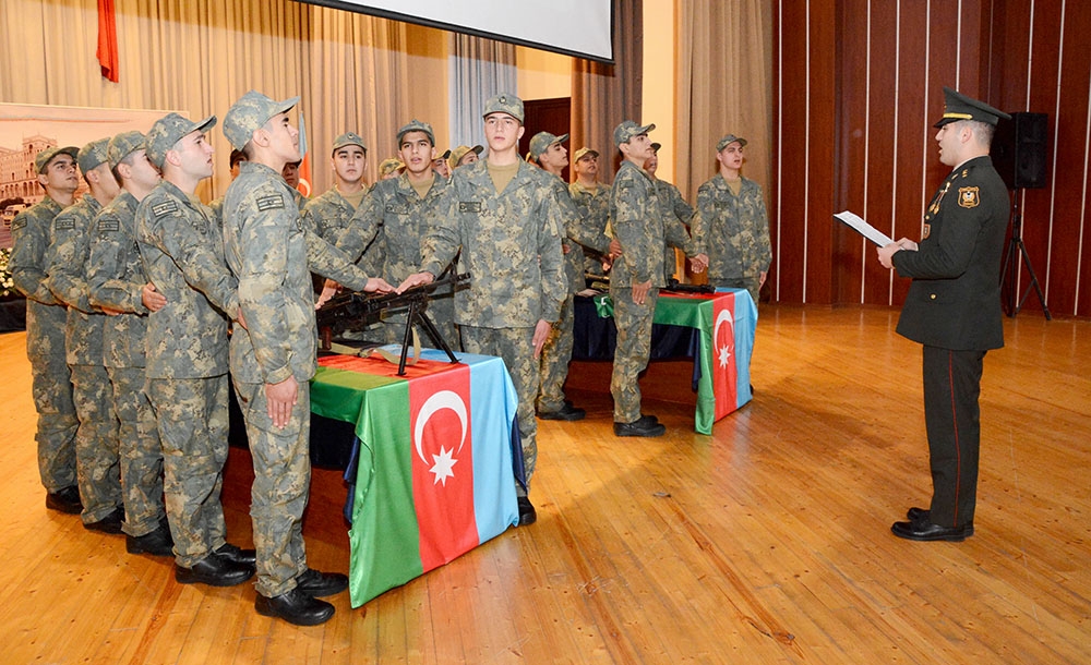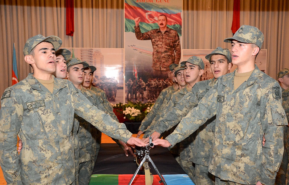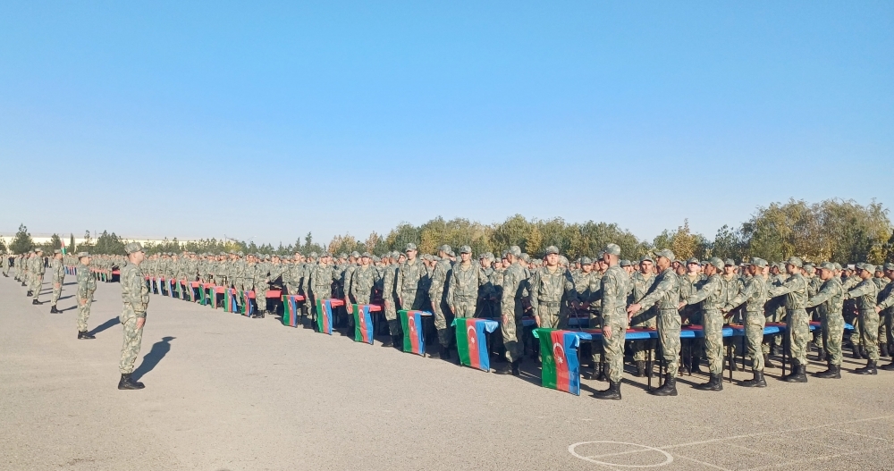 Gənc əsgərlər öz növbəsində Vətənə, dövlətə və Ali Baş Komandana, Hərbi anda sadiq olacaqlarına, nümunəvi, nizam-intizamlı xidmət edəcəklərinə, silah və texnikanın sirlərini dərindən öyrənəcəklərinə, döyüş qabiliyyətlərini daim artıracaqlarına, komandir-rəis heyətinin əmr və sərəncamlarını dəqiq və vaxtında yerinə yetirəcəklərinə söz veriblər.