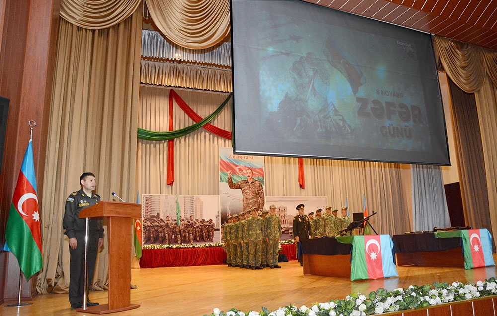 Tədbirlərdə Müdafiə Nazirliyinin nümayəndələri və hərbi hissələrin komandir heyəti çıxış edərək andiçmə mərasiminin 8 Noyabr – Zəfər Gününə təsadüf etməsini xüsusi vurğulayaraq, döyüş əməliyyatlarında qazandığımız qələbələrin tarixi əhəmiyyətindən danışıblar. Vətənimizin müdafiəsində ayıq-sayıq olmağı, qarşıya qoyulmuş tapşırıqları vicdanla yerinə yetirməyi tövsiyə ediblər.