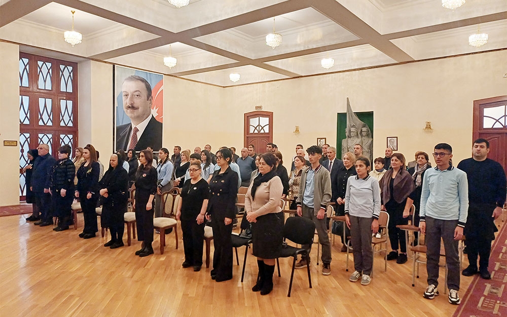 Qeyd edilib ki, nazirliyin nümayəndələri, şəhidlərin ailə üzvləri, yaxınları, döyüş yoldaşları, məktəblilər və digər qonaqların iştirak etdiyi mərasimdə xalqımızın Ümummilli Lideri Heydər Əliyevin, Azərbaycanın suverenliyi, müstəqilliyi və torpaqlarımızın azadlığı uğrunda şəhid olan Vətən övladlarının xatirəsi bir dəqiqəlik sükutla yad edilib. Azərbaycan Respublikasının Dövlət Himni səsləndirilib.