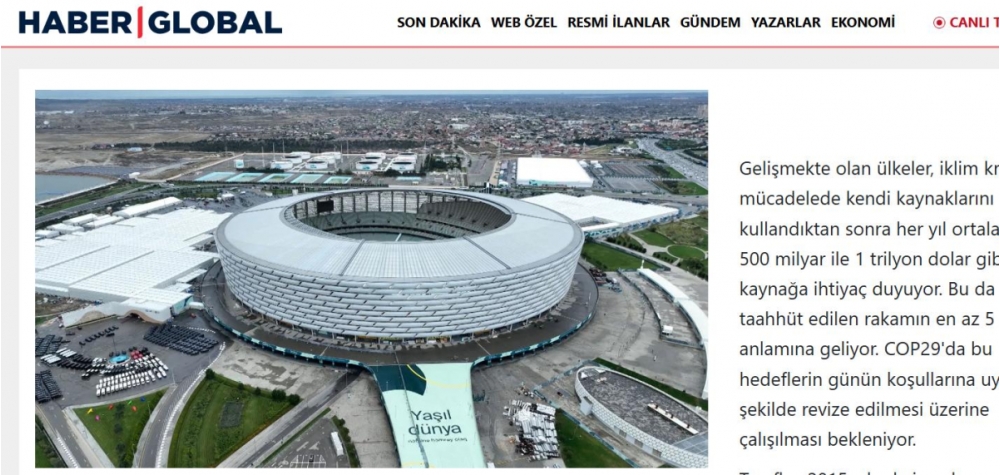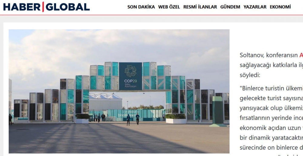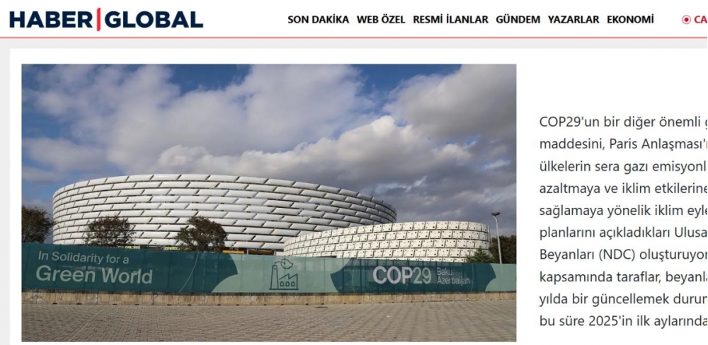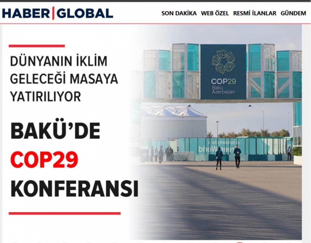Türkiyənin “Haber Global” telekanalı BMT-nin İqlim Dəyişikliyi üzrə Çərçivə Konvensiyasının Tərəflər Konfransının 29-cu sessiyasının (COP29) işə başladığı Bakıdan reportaj hazırlayıb.