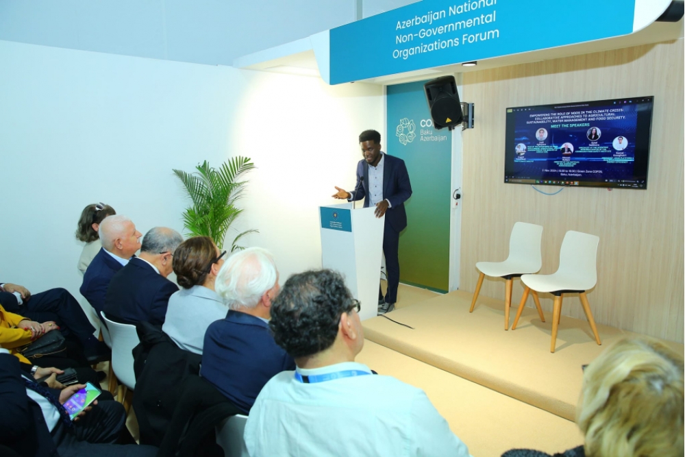 Tədbirdə Torpaqşünaslıq və Aqrokimya İnstitutunun direktoru professor Əlövsət Quliyev, iqlim dəyişikliyinin post-konflikt ərazilərdə kənd təsərrüfatı və ekoloji vəziyyət üzərindəki təsirlərinə toxundu. O, bu ərazilərdə su mənbələrinin, xüsusən də kəhrizlərin bərpasının əhəmiyyətini vurğuladı və QHT-lərin bu sahədə infrastrukturun yenilənməsi və ekosistemlərin bərpası üçün xüsusi layihələr icra etməli olduğunu bildirdi. Professor, post-konflikt bölgələrdə icmaların yenidən məskunlaşması və kənd təsərrüfatının inkişafı üçün su resurslarının bərpasının vacibliyini və QHT-lərin dövlət və beynəlxalq təşkilatlarla əməkdaşlığının əhəmiyyətini xüsusilə diqqətə çatdırdı.