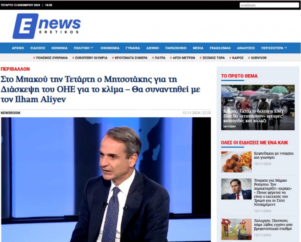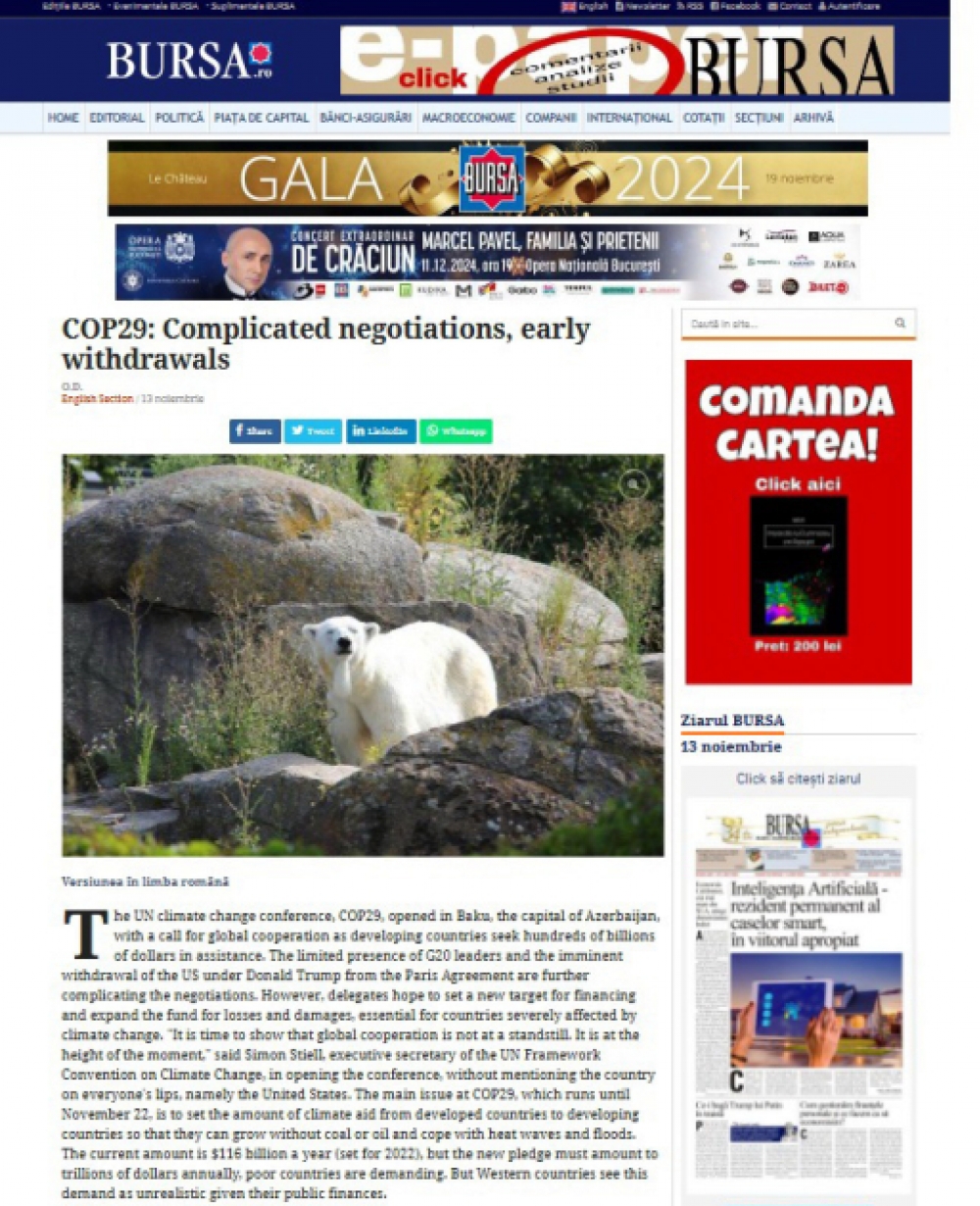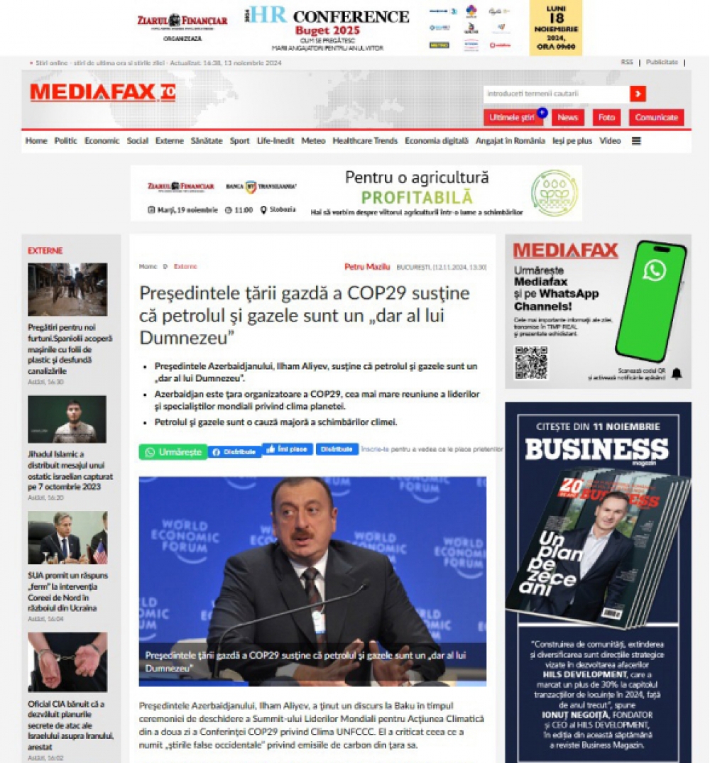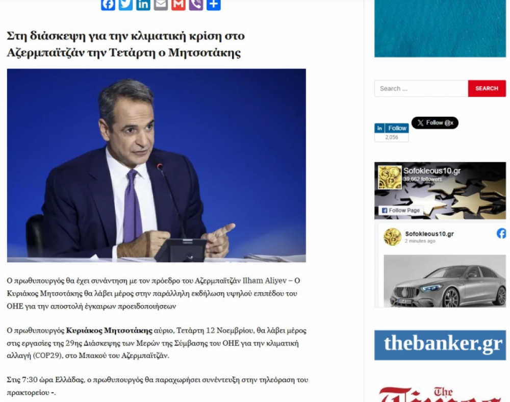 Rumıniya, Bolqarıstan, Xorvatiya və Yunanıstanın aparıcı mətbu orqanları Azərbaycanda keçirilən BMT-nin İqlim Dəyişmələri üzrə Çərçivə Konvensiyasının Tərəflər Konfransının 29-cu sessiyasını (COP29) diqqət mərkəzində saxlamaqda davam edir.