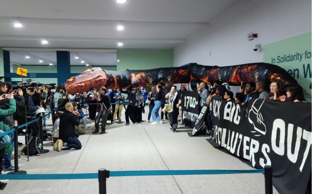 İqlim aktivistləri COP29-da qalıq yanacaqların istifadəsinə qarşı aksiya keçirirlər.