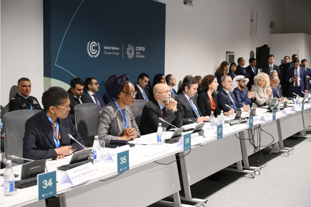 İclasda çıxış edən Azərbaycanın xarici işlər naziri Ceyhun Bayramov bildirib ki, sülh Azərbaycanın əsas prioritetidir. Nazir qeyd edib ki, iqlim dəyişikliyi qida təhlükəsizliyi ilə bağlı problemi də gücləndirir, su qıtlığını və torpağın deqradasiyasını sürətləndirir. Bunlar da öz növbəsində miqrasiyaya aparır. İqlim dəyişikliyinin yaratdığı fəlakətlər qeyri-sabitliyin dərinləşməsinə səbəb olan münaqişələr üçün katalizator rolunu oynayır. Münaqişələr və onların nəticələrinin infrastruktura, torpağın deqradasiyasına və biomüxtəlifliyə dağıdıcı təsirləri iqlim böhranını daha da artıracaq və sülhə, dayanıqlığa və inkişafa zərər gətirəcək. Ceyhun Bayramov, eyni zamanda, əlavə edib ki, 2021-ci ilə qədər 355 milyon ev təsərrüfatı, təxminən 1,3 milyard insan iqlim təhlükələrinə məruz qalıb. Beş yüz milyondan çox insan münaqişə və ya münaqişəyə meyilli ərazilərdədir. Ən həssas təbəqənin artan səsinə cavab olaraq, COP29 sədrliyi son bir neçə ay ərzində iqlim və sülh əlaqəsi üzrə birgə fəaliyyəti gücləndirmək üçün beynəlxalq səylərə rəhbərlik edir.