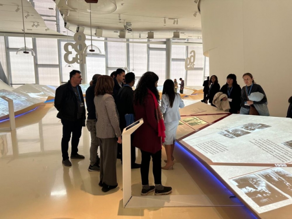 Heydər Əliyev Mərkəzində davam edən turda xarici media nümayəndələrinə Mərkəzin fəaliyyəti haqqında ətraflı məlumat verilib. “Azərbaycan inciləri” sərgisi ilə də tanış olan qonaqlara burada ölkəmizin tükənməz təbii sərvətləri, çoxəsrlik tarixi, mədəni irsi ilə bağlı nadir eksponatların nümayiş etdirildiyi bildirilib.