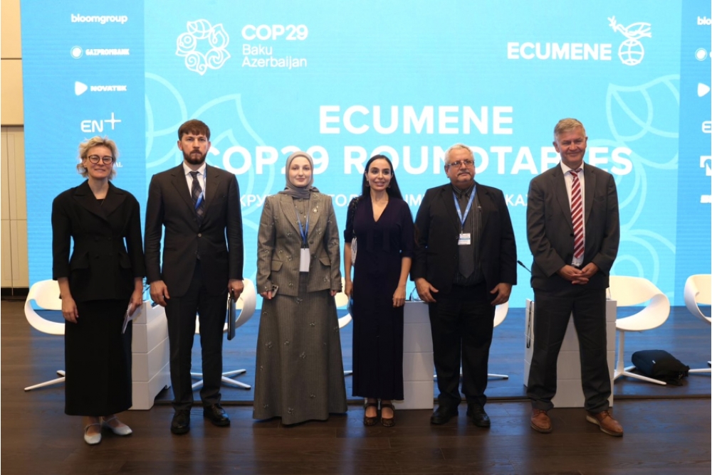 Heydər Əliyev Fondunun vitse-prezidenti, IDEA (Ətraf Mühitin Mühafizəsi Naminə Beynəlxalq Dialoq) İctimai Birliyinin təsisçisi və rəhbəri Leyla Əliyeva noyabrın 15-də “Ecumene” Qlobal Forumu tərəfindən BMT-nin İqlim Dəyişmələri üzrə Çərçivə Konvensiyasının Tərəflər Konfransının 29-cu sessiyası (COP29) çərçivəsində təşkil olunan plenar iclasda çıxış edib.