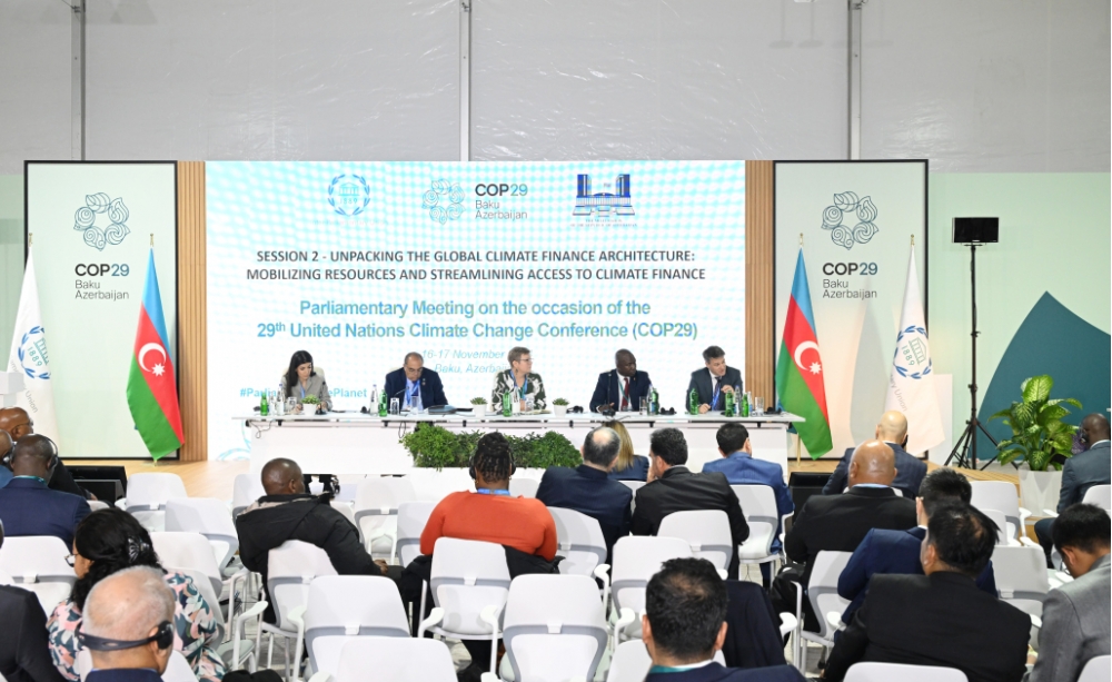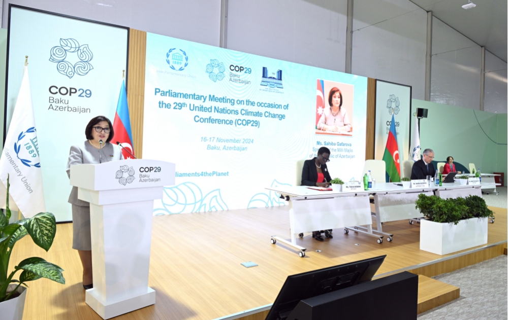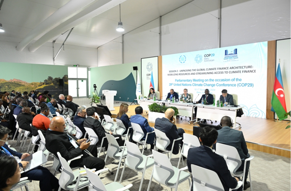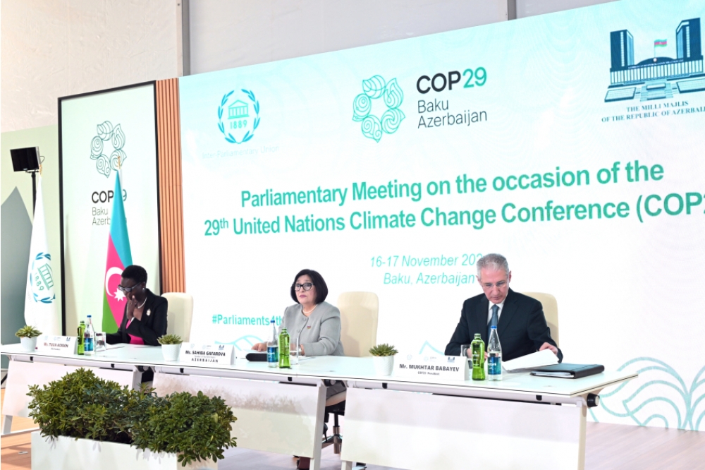 BMT-nin İqlim Dəyişmələri üzrə Çərçivə Konvensiyasının Tərəflər Konfransının 29-cu sessiyası - COP29 çərçivəsində noyabrın 16-da Bakıda Parlamentlərarası İttifaq və Milli Məclisin birgə təşkilatçılığı ilə Parlament Görüşünün ilk günü baş tutub.
