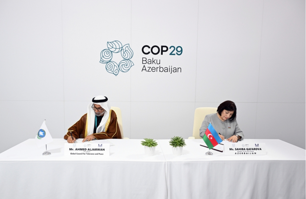Sənədi Azərbaycan tərəfindən Milli Məclisin sədri Sahibə Qafarova, Tolerantlıq və Sülh naminə Beynəlxalq Parlament tərəfindən isə Qlobal Tolerantlıq və Sülh Şurasının sədri Əhməd Məhəmməd Əlcərvan imzalayıblar.