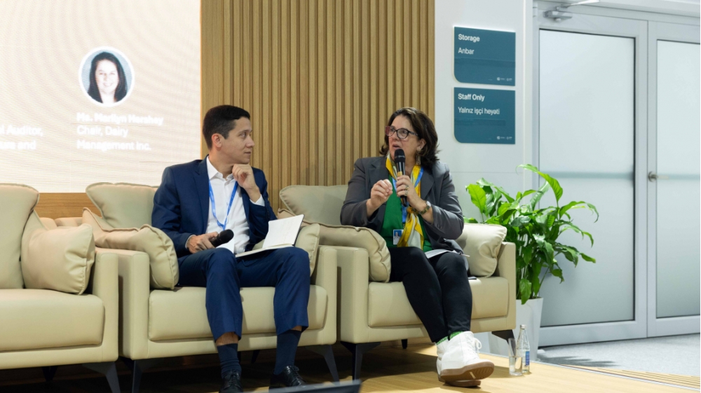 Tədbirdə südçülüklə bağlı “Dairy Management Inc.” şirkətinin sədri Merilin Herşi də danışıb. “Süd fermaları üçün davamlılıq yalnız bir məsuliyyət deyil – bu, həyat tərzidir. Tədqiqatlardan faydalanaraq və innovativ təcrübələri tətbiq edərək biz ətraf mühiti qoruyur və süd təsərrüfatının gələcək nəsillər üçün davamlılığını təmin edirik”, - deyə o bildirib.