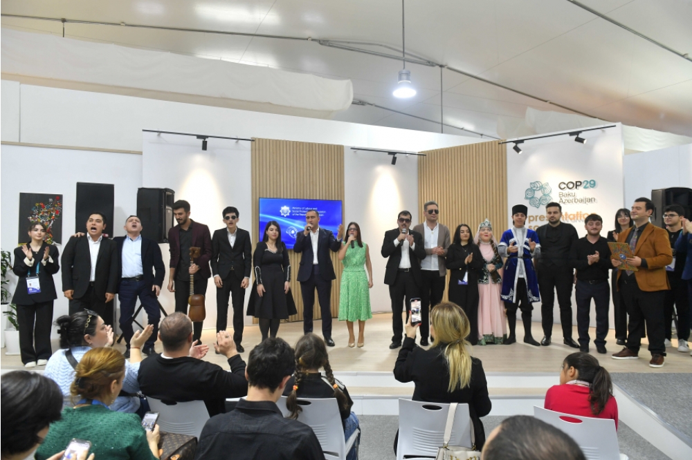 Ekspozisiyada həssas əhali qruplarından olan şəxslərin ətraf mühitin mühafizəsinə və təbiəti qorumağın vacibliyi məsələlərinə həsr etdiyi sənət nümunələri də yer alıb. Mərkəzin istedadlı üzvlərinin ifasında musiqi və rəqs nömrələri tamaşaçıların marağına səbəb olub. Konsert proqramında dünya musiqisi, eləcə də Azərbaycan bəstəkarlarının əsərləri səsləndirilib.