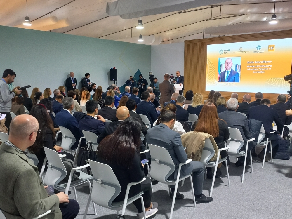 Bakıda COP29 çərçivəsində Yaşıl Zonada “QS dünya universitetlərinin reytinq nəticələrinin elanı: Dayanıqlılıq 2025” mövzusunda panel müzakirə keçirilib.