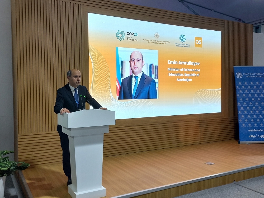 Elm və təhsil naziri Emin Əmrullayev tədbirdə bildirib ki, təhsil sahəsində Azərbaycan təcrübəsini dünyada təbliğ etməyə, eyni zamanda, dünya təcrübəsini Azərbaycanda tətbiq etməyə çalışırıq: “Dünyanın müxtəlif ölkələrində artıq iqlim qiymətləndirilməsini müzakirə etmək mümkündür. Başa düşürük ki, reytinq hər şeyi əhatə etmir. Lakin reytinq bir çox məsələlərdə əsas götürülür. Rəqabət yaradır, önəmli məsələlərə fokuslanmağa kömək edir. Elm və Təhsil Nazirliyi 2022-2026-cl il üzrə dövlət strategiyası ilə Azərbaycanın üç universitetini dünyadakı ilk 500-lüyə salmağa çalışır.”