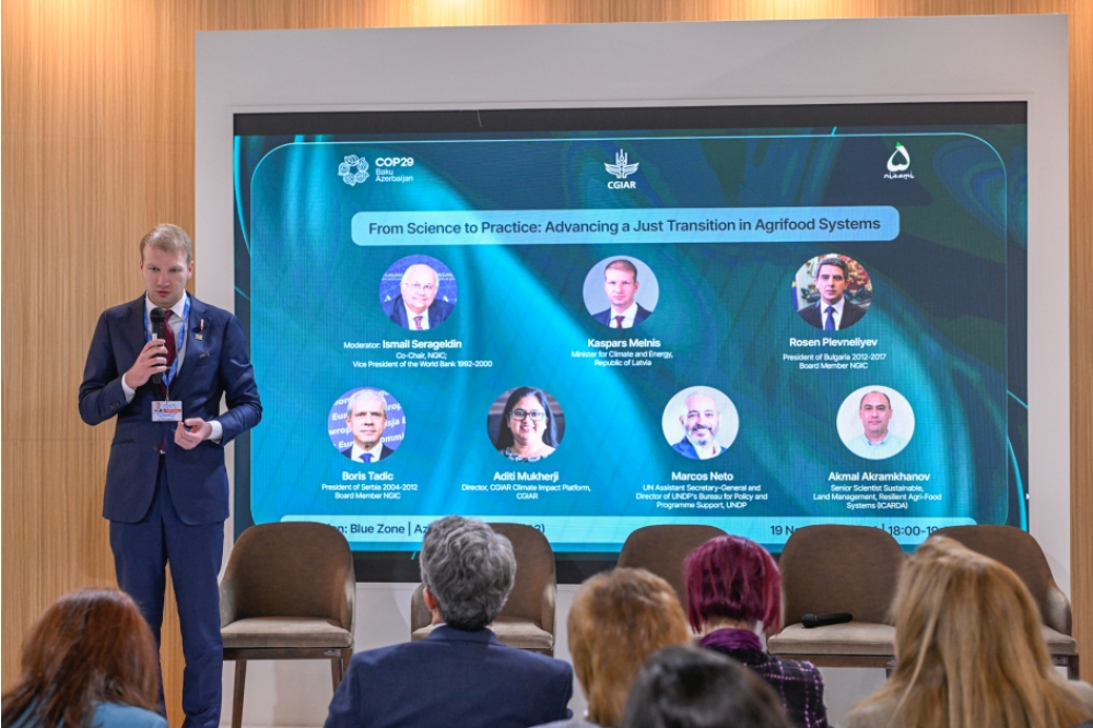 COP29 çərçivəsində Nizami Gəncəvi Beynəlxalq Mərkəzinin təşkilatçılığı ilə “Elmdən təcrübəyə: aqrar-ərzaq sistemlərində ədalətli keçidin inkişafı” mövzusunda sessiya təşkil olunub.