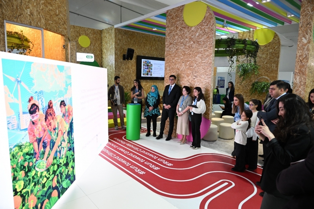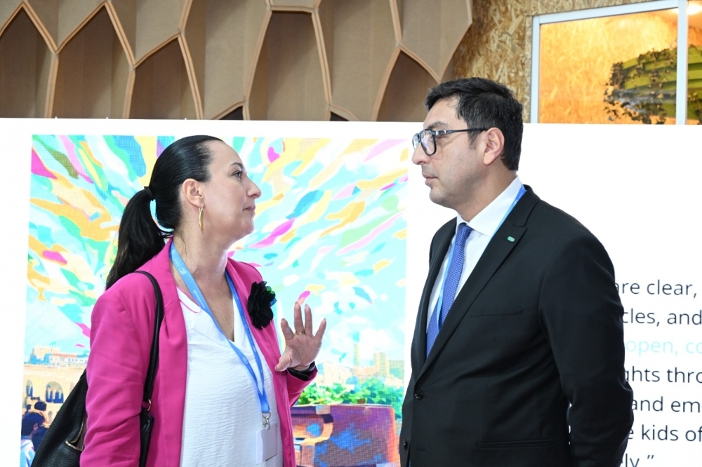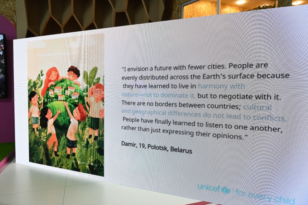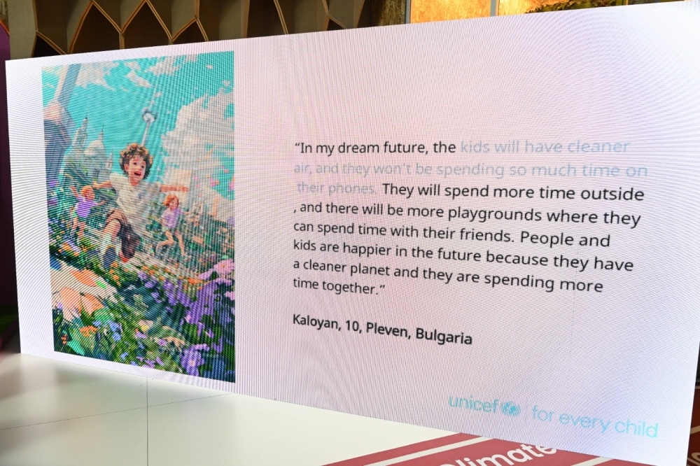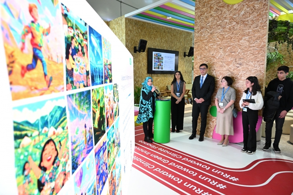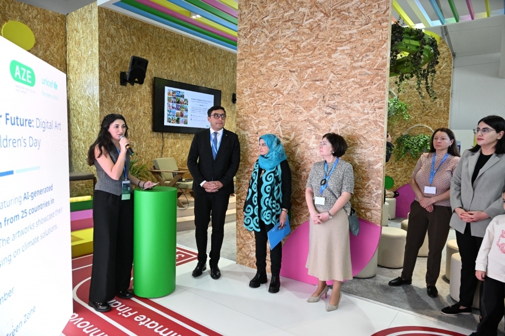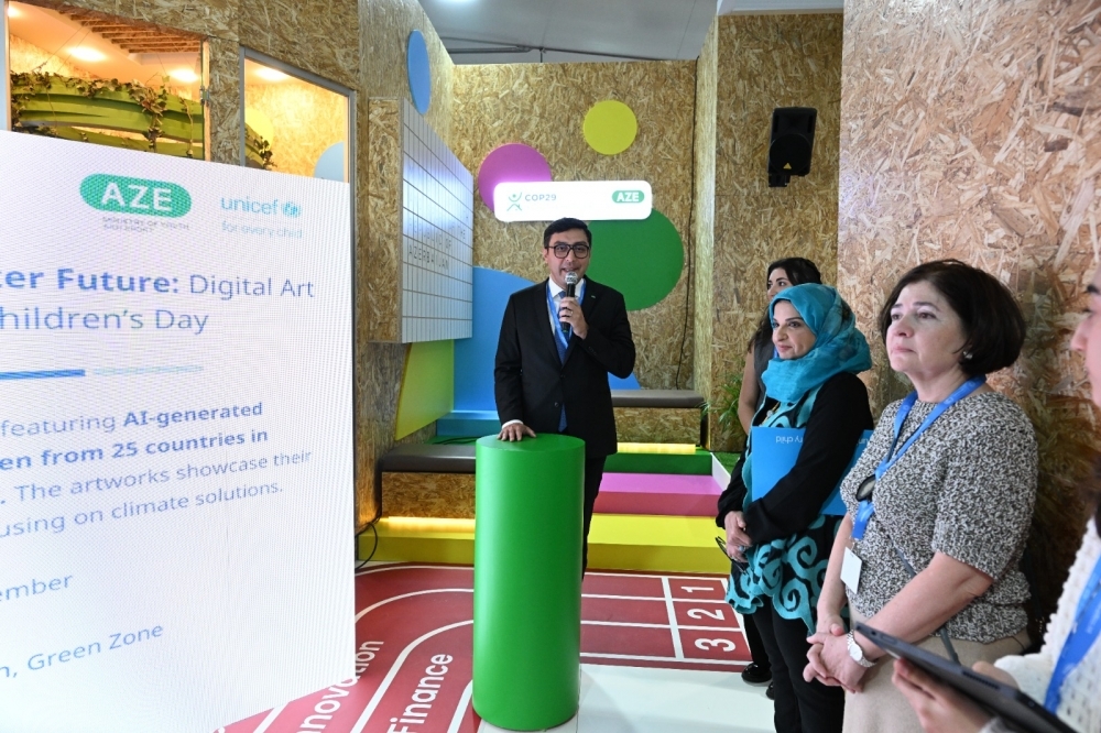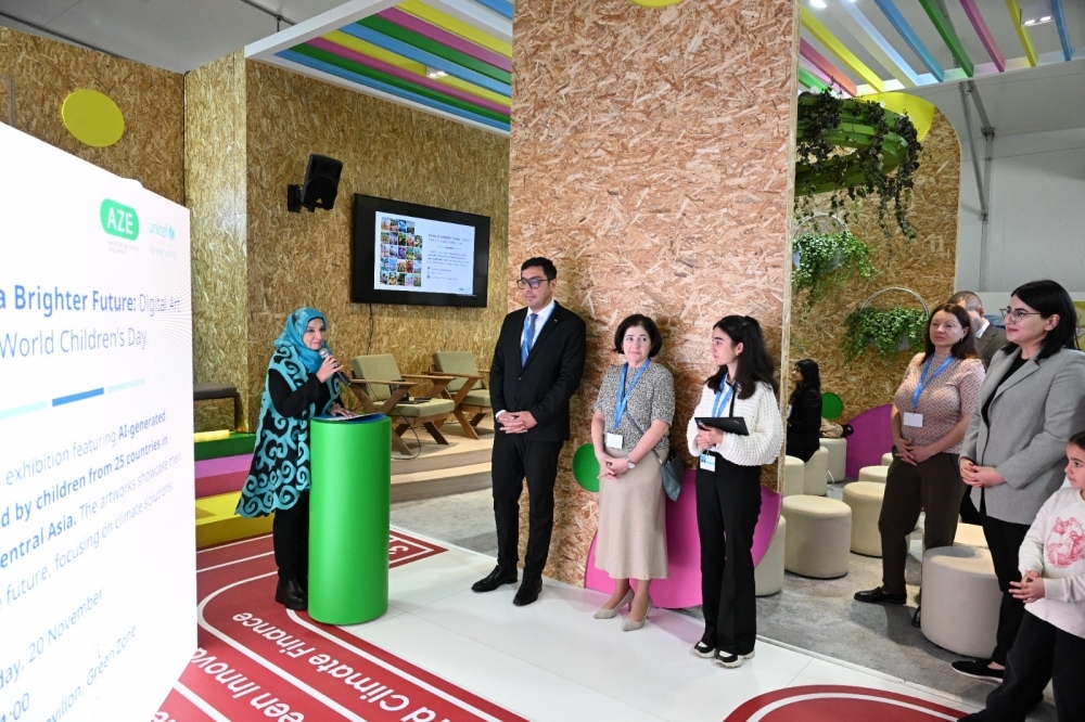 COP29-un Yaşıl Zonasındakı Gənclər Evi pavilyonunda baş tutan sərgidə 20-dən çox ölkədən uşaqların iqlim fəaliyyətinə dair fikir və ideyaları süni intellekt vasitəsilə nümayiş etdirilib. UNİCEF-in Avropa və Mərkəzi Asiya üzrə Regional Ofisi tərəfindən hazırlanan sərginin açılış mərasimində gənclər və idman naziri Fərid Qayıbov, UNICEF-in Azərbaycandakı nümayəndəsi Dr. Saca Faruq Abdullah və gənc iqlim elçiləri iştirak ediblər.