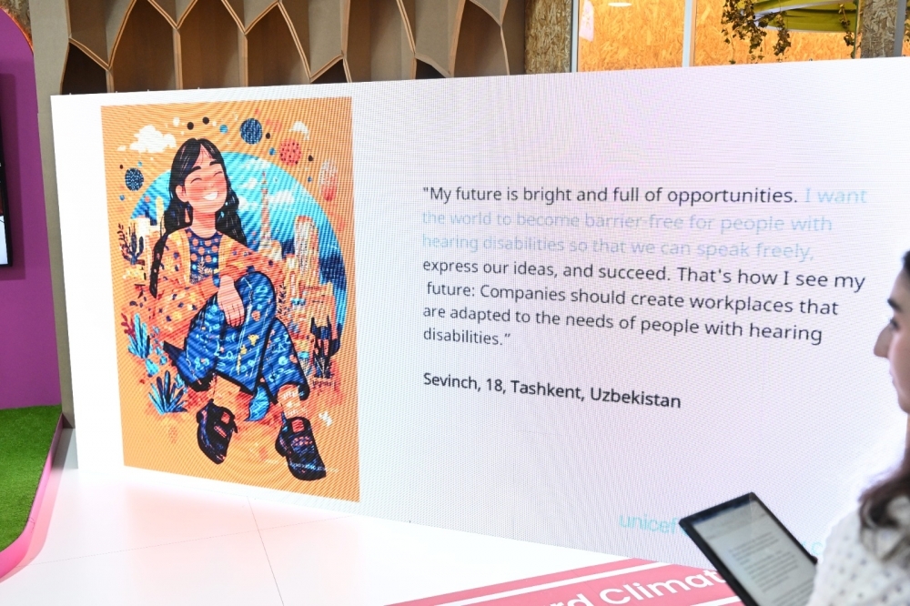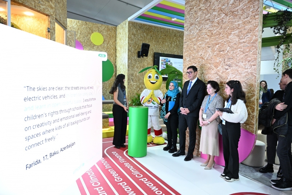 “COP29-da gənclərin bilikləri və göstərdikləri həvəs məni heyran edir. Onların dünyanı daha yaxşı bir yerə çevirmək, iqlim dəyişikliyinin təsirlərini azaltmaq üçün irəli sürdükləri ideyalar və həll yolları nəzərə alınmalıdır. Bu gün burada uşaqların iqlimlə bağlı perspektivdən gələcəyi necə təsəvvür etdiklərini göstərən incəsənət əsərlərini görürük. Onların baxışları iqlim fəaliyyətinin mərkəzində olmalıdır”, – deyə UNICEF-in Azərbaycandakı nümayəndəsi Dr. Saca Faruq Abdullah vurğulayıb.