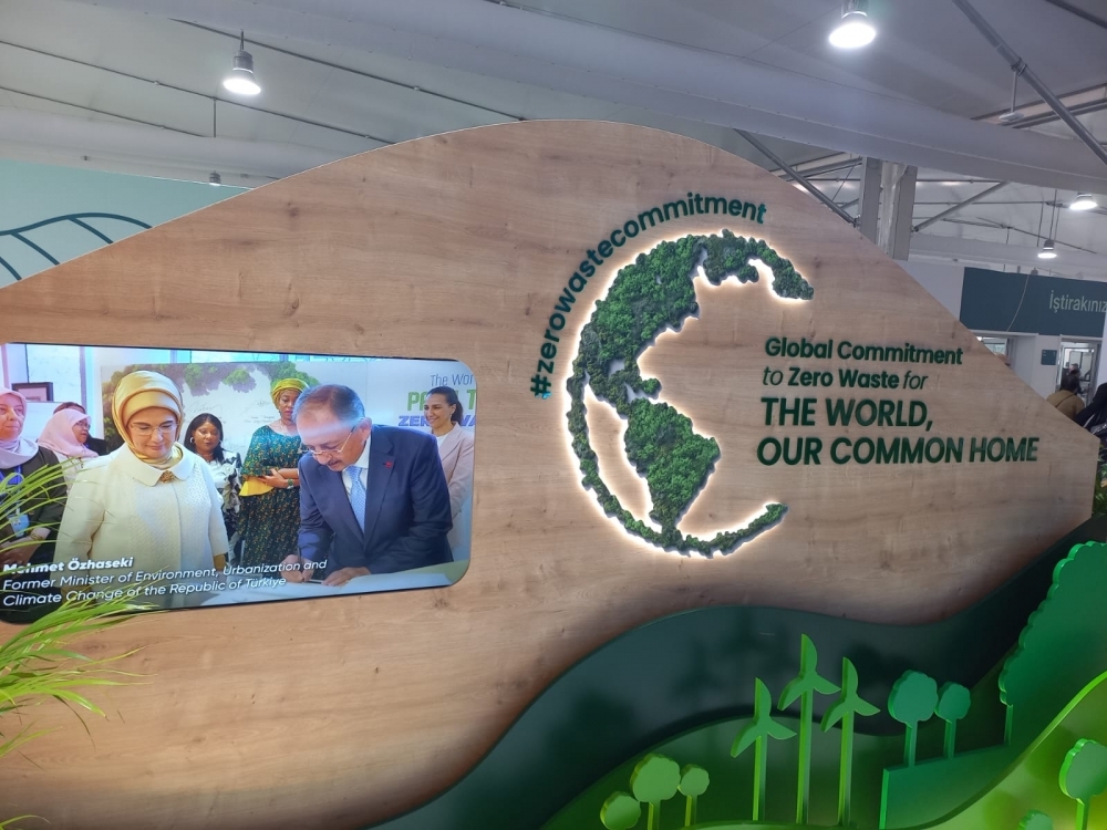 COP29-un Yaşıl Zonasında Türkiyə Prezident Administrasiyasının Kommunikasiyalar İdarəsinin "Sıfır tullantı" əsas mövzusu ilə qurduğu pavilyonda ziyarətçilərə Prezident Rəcəb Tayyib Ərdoğanın həyat yoldaşı, BMT-nin Sıfır Tullantı Məsləhət Şurasının sədri Əminə Ərdoğanın təşəbbüsləri ilə başladılan "Sıfır tullantı" layihəsi haqqında məlumat verilir.