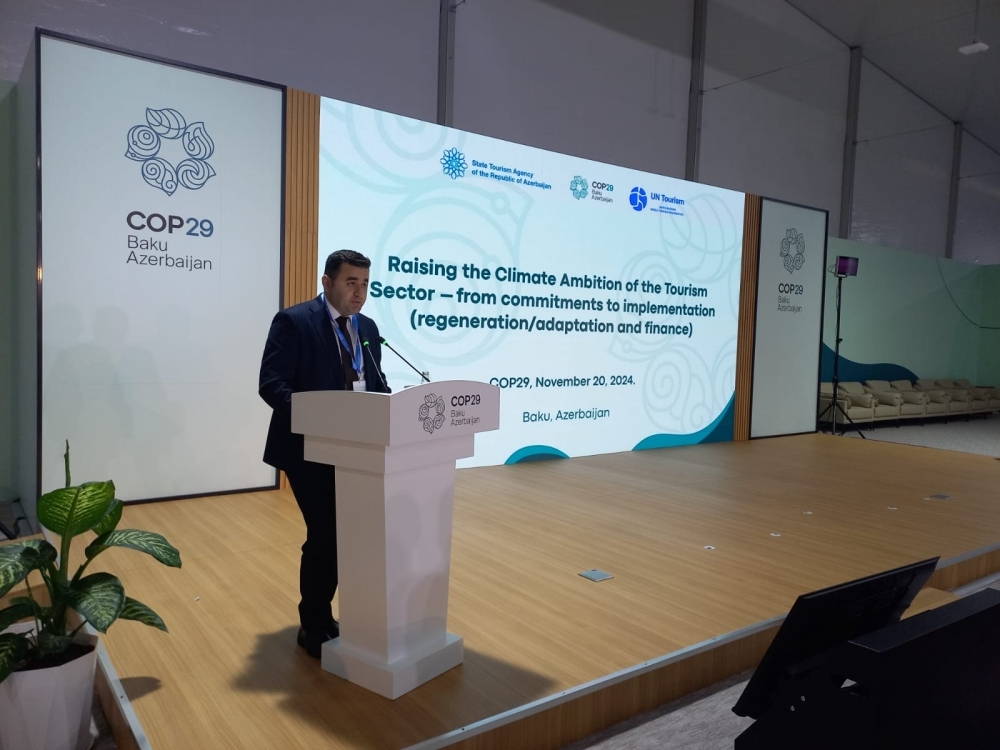 Azərbaycan Respublikasının Dövlət Turizm Agentliyinin Turizm siyasəti və strategiyası şöbəsinin müdiri Məhəmməd Muradov çıxışında bildirib ki, COP29 konfransı təbiət məsələlərinə yönəlmiş iddialı bir gündəmi irəlilətmək üçün nadir fürsət təqdim edir: “Bu tədbir davamlı qida sistemlərinə sərmayə qoyulması, müxtəlifliyin qorunması və icmalar üçün faydalı tədbirlərin görülməsi kimi məsələləri əhatə edir. Bugünkü tədbir uğurlu müdaxilələrin müzakirəsi və uyğunlaşan təbiət mərkəzləri üçün təməl hazırlamaq məqsədi daşıyır. Bu model yerli mühitləri qoruyub saxlamağa kömək edir və iqlim tədbirlərinin miqyasını artırmaq üçün maliyyələşdirmə mexanizmləri ilə birləşdirilə bilər. Bu dəyişikliklərə nail olmaq üçün ənənəvi maliyyələşdirmə sistemlərinin artıq köhnəlmiş olduğunu nəzərə alaraq, yaradıcı maliyyələşdirmə həlləri axtarmalıyıq. Bu, ictimai və özəl sektorlarda iştirak edən tərəfləri bir araya gətirərək, müəssisələrə təsirli iqlim layihələrini həyata keçirmək imkanı verməlidir”.