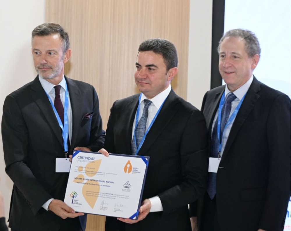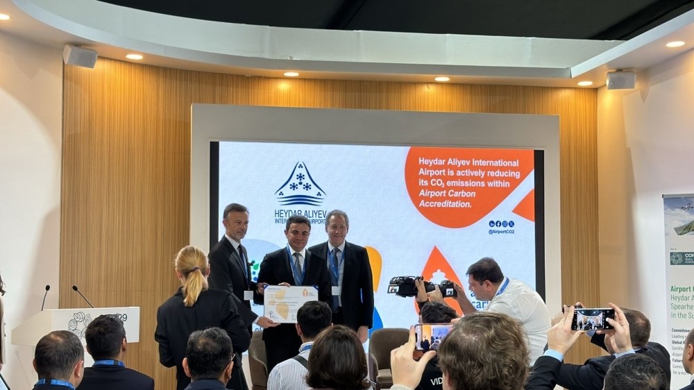 20 noyabr 2024-cü il, Bakı – COP29 iqlim konfransı çərçivəsində Heydər Əliyev Beynəlxalq Aeroportu və Avropa Beynəlxalq Hava Limanları Şurasının (ACI EUROPE) birgə təşkil etdiyi xüsusi tədbirdə qlobal hava limanı sənayesi dekarbonizasiya istiqamətində sürətlənmiş səylərini bir daha nümayiş etdirilib. Tədbirdə Heydər Əliyev Beynəlxalq Aeroportuna karbon emissiyalarının azaldılması üzrə əldə etdiyi irəliləyişlərə görə Hava Limanları Karbon Akreditasiyası (ACA) proqramının 2-ci səviyyə "Azaltma" sertifikatı təqdim olunub.