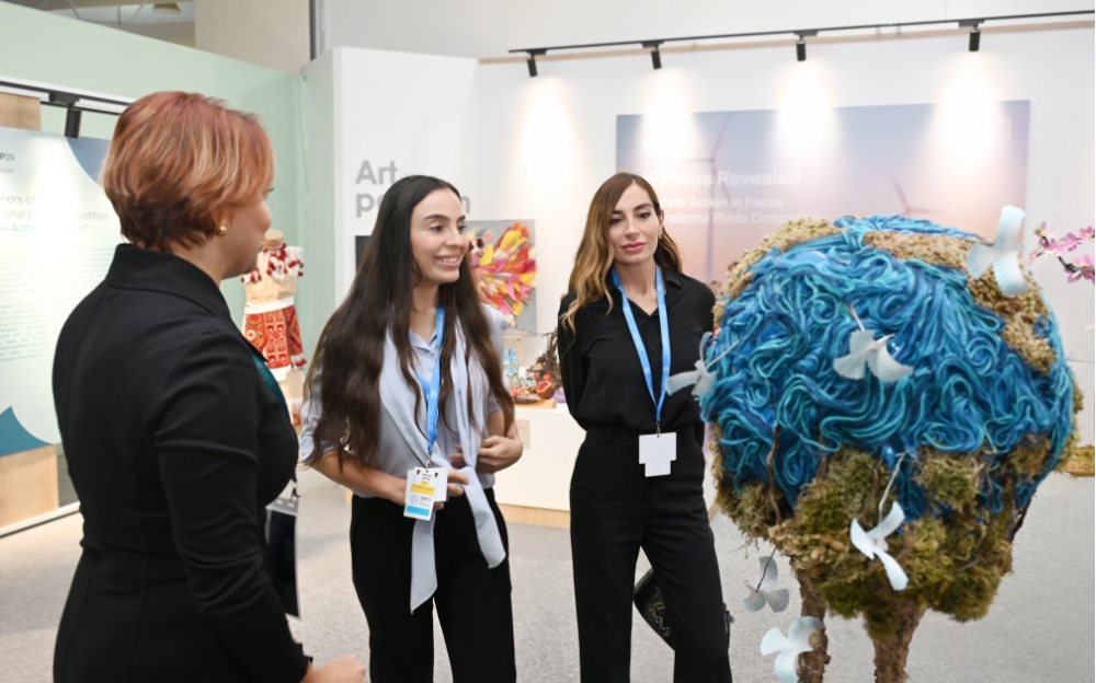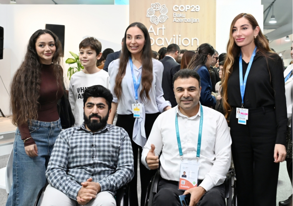 Heydər Əliyev Fondunun vitse-prezidenti Leyla Əliyeva və Bakı Media Mərkəzinin rəhbəri Arzu Əliyeva DOST İnklüziv İnkişaf və Yaradıcılıq Mərkəzi tərəfindən COP29-un Yaşıl Zonasındakı “Art Pavillion”da təqdim edilən sərgi ilə tanış olublar.