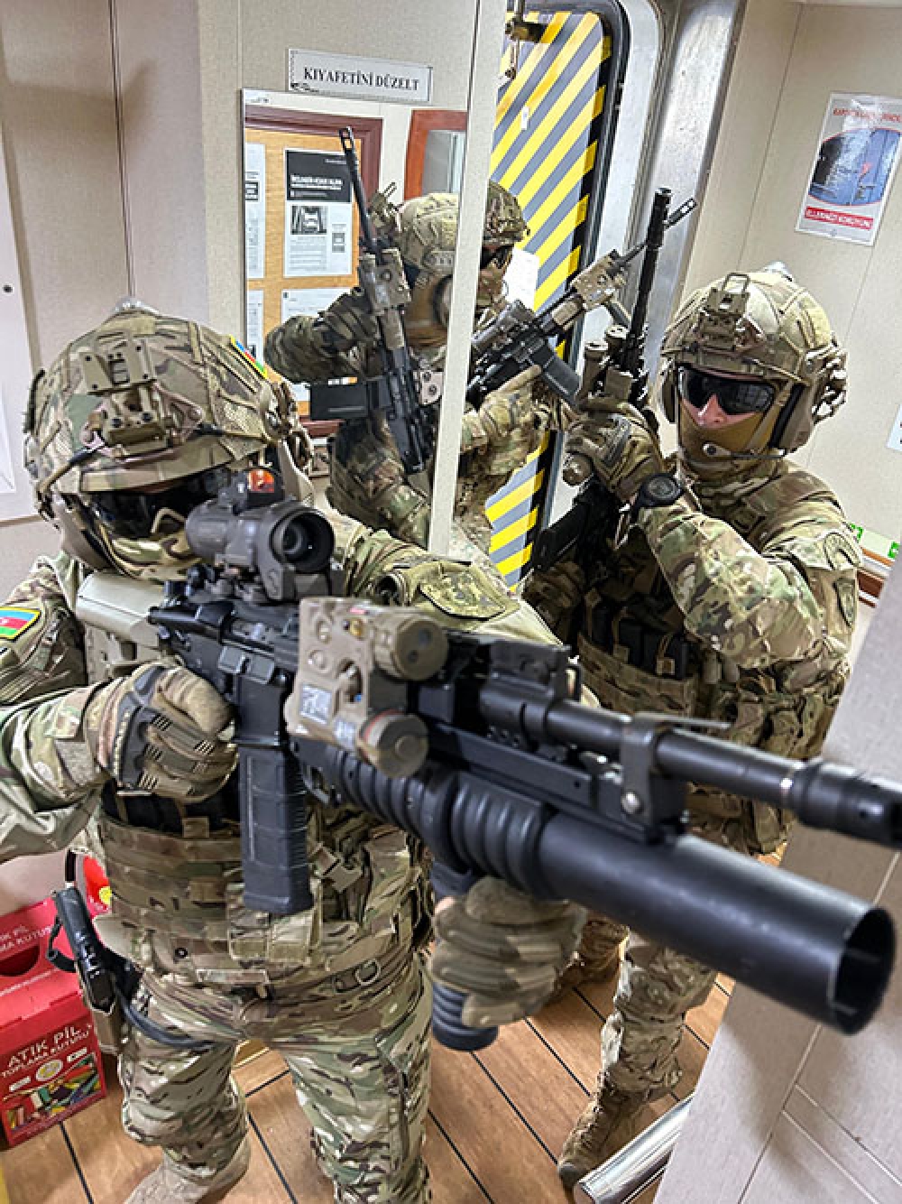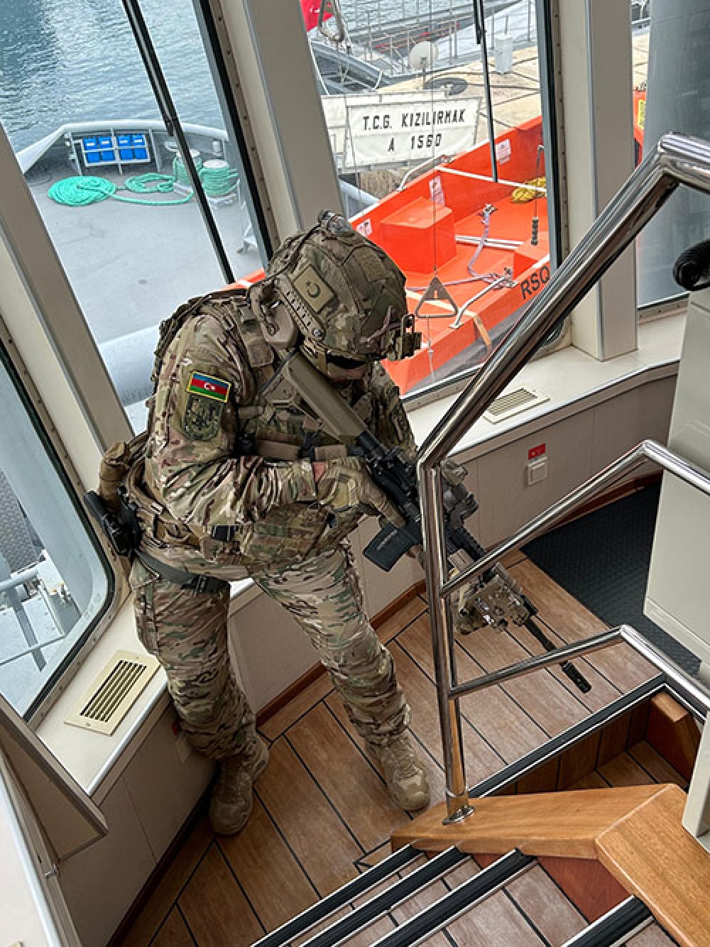Türkiyə Respublikasının Marmaris şəhərinin Aksaz dəniz bazasında keçirilən birgə təlimdə dəniz xüsusi təyinatlıları hədəf gəmilərinin zəbt edilməsi üzrə tapşırıqları yüksək peşəkarlıqla yerinə yetirib.