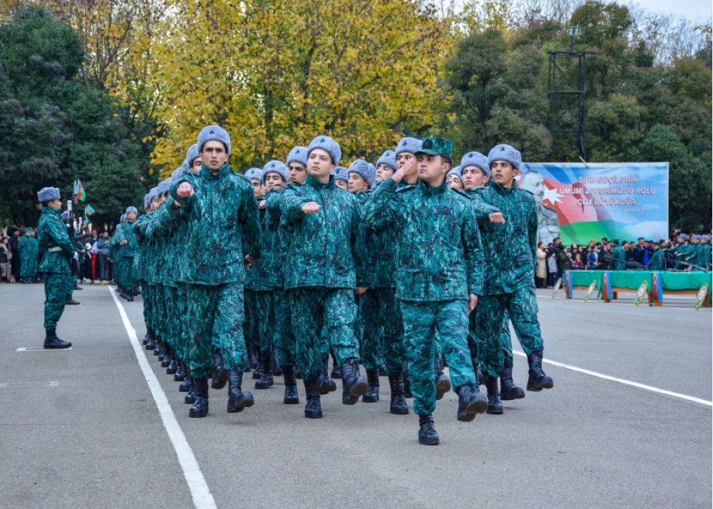 Andiçmə mərasimi gənc əsgərlərin təntənəli marşla tribuna önündən keçidi ilə başa çatıb.