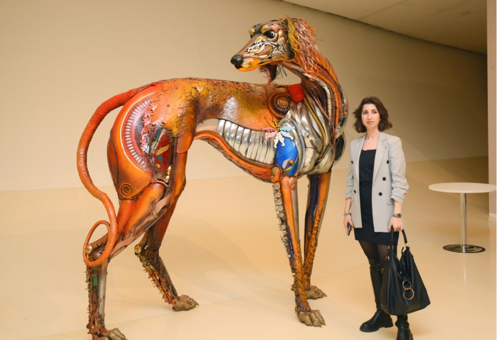 “Təkrar emal olunmuş metal hissələrdən düzəltdiyim heykəllər sosial şəbəkələr üçün platforma rolunu oynayır. Mənim bədii yanaşmamın əsasında incəsənətin transformasiyada katalizator rolu oynadığını, sosial-mədəni landşaftın öyrənilməsi üçün bir alət olduğunu, yenidənqurmada vasitəçiyə çevrildiyini, ekoloji deqradasiyaya etiraz forması kimi çıxış etdiyini ifadə edən inamım dayanır”, - deyə heykəltaraş bildirib.
