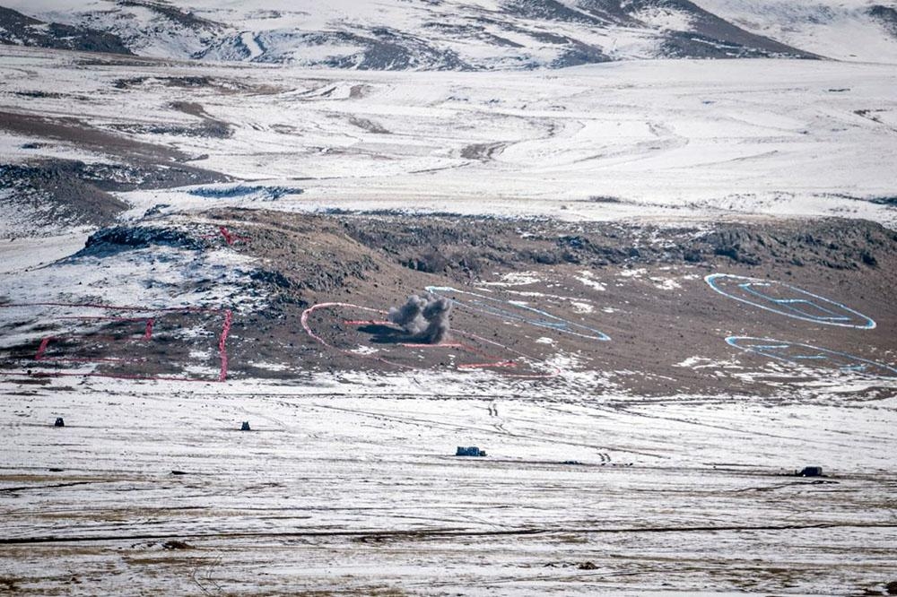Təlimin ssenarisinə uyğun olaraq, artilleriya qurğuları, zirehli texnika, döyüş təyyarələri və helikopterlərdən qeyri-qanuni silahlı birləşmələrin sığınacaqları, texnikası və canlı qüvvəsinin məhv edilməsi üzrə tapşırıqlar yerinə yetirilib.
