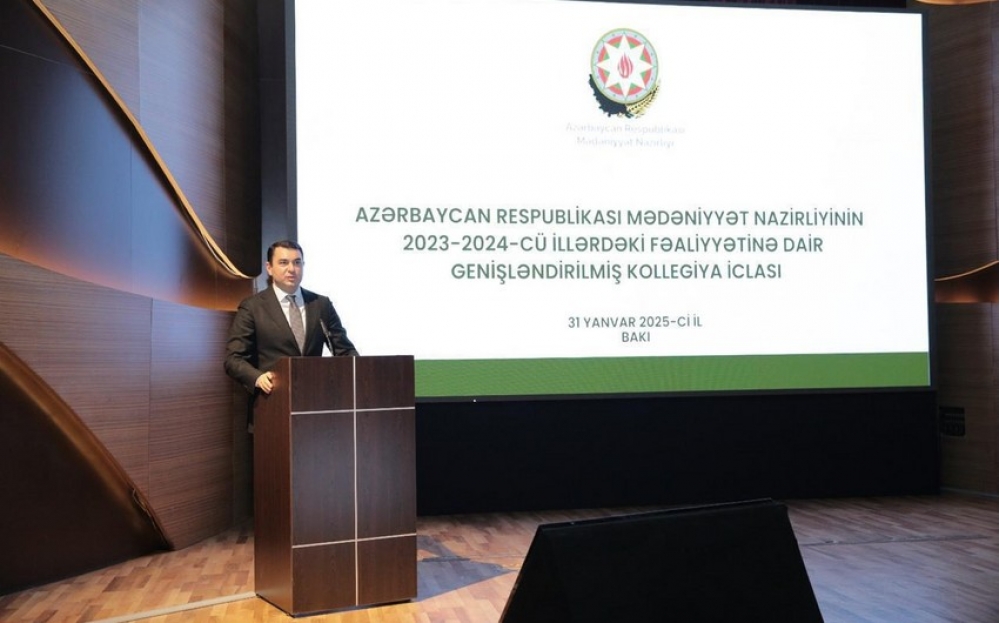 Bildirilib ki, Mədəniyyət Nazirliyi Media və kommunikasiya şöbəsinin müdiri Aynur Kərimovanın moderatorluğu ilə gerçəkləşən iclasda mədəniyyət naziri Adil Kərimli çıxış edərək 2023 və 2024-cü illər üzrə ölkədə mədəniyyətin mənzərəsinə nəzər salıb. Nazir Mədəniyyət Nazirliyi tərəfindən ötən dövrdə görüşmüş işlər, qarşıda duran vəzifələr və nəzərdə tutulan layihələr barədə məlumat verib.