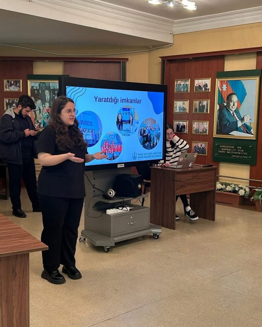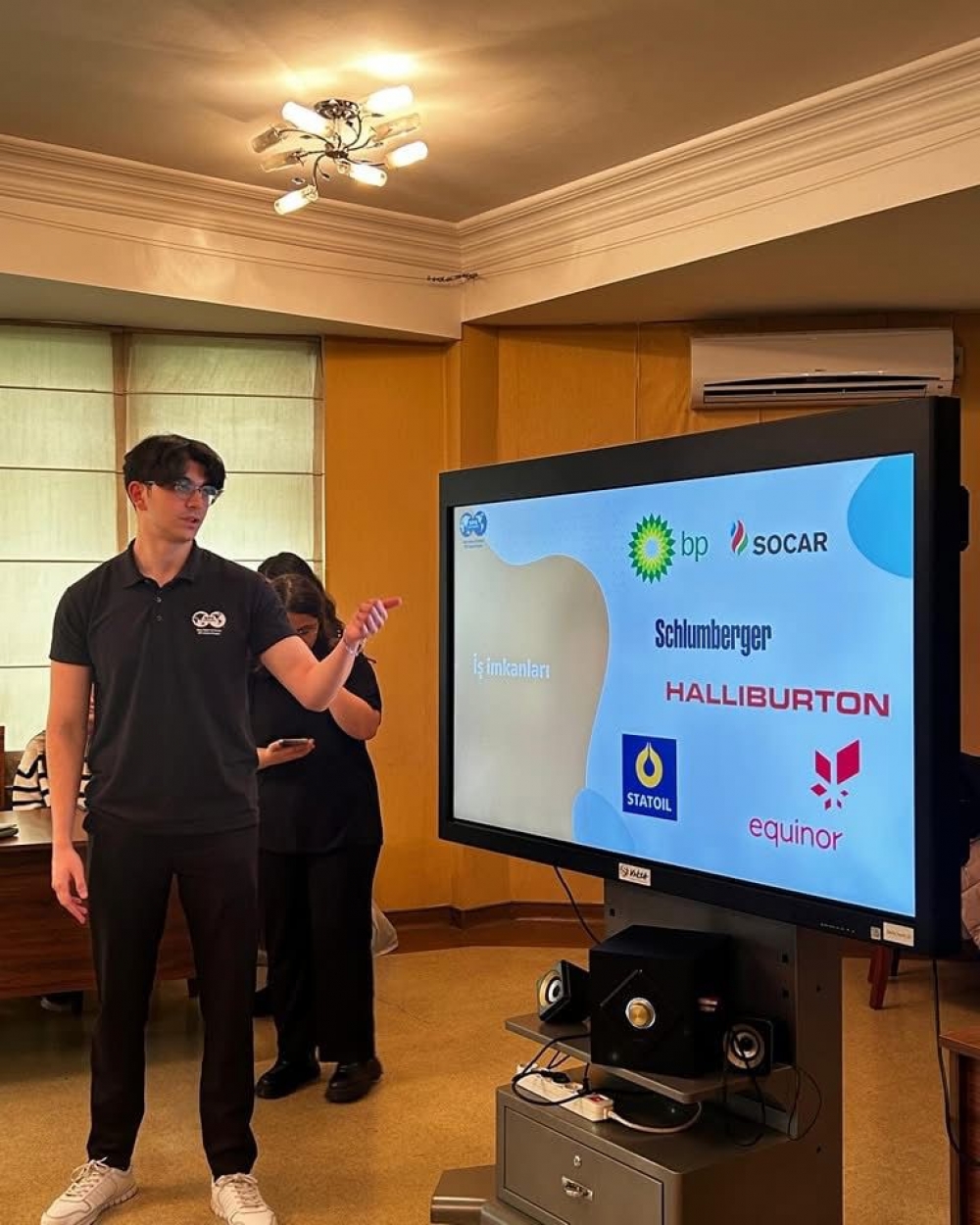 SOCAR-ın Baki Ali Neft Mektebinin Neftçi Mühəndisləri Cəmiyyəti (SPE BHOS SC) akademik Zərifə Əliyeva adına Liseyin şagirdləri üçün təqdimat edib.