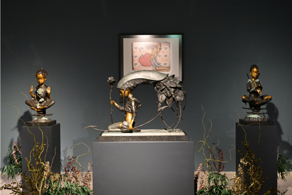 Sərgidə müəllifin “Yuxulara səyahət”, “Pişik-qız və tısbağa rəqsi”, “Yelpik və albalı”, “Ürəklə qız”, “Günəşin uşaqları”, “Hind fili və kəpənəklər” kimi ilk dəfə məhz Bakıda tamaşaçı qarşısına çıxartdığı əsərləri də yer alıb.
