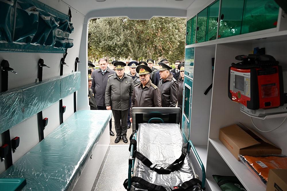 Sonda müdafiə naziri Hospitalın ərazisində tibb xidmətinin balansında olan, müasir avadanlıqlarla təchiz edilmiş, ambulator xidmətlər üçün nəzərdə tutulmuş xüsusi avtomobillərlə tanış olub.