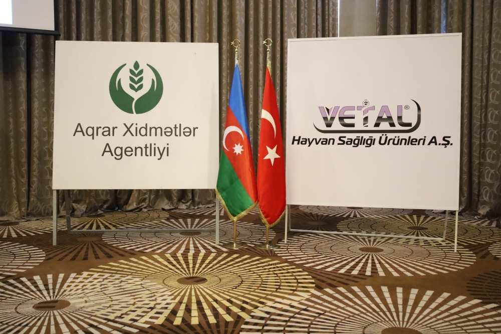 Kənd Təsərrüfatı Nazirliyi yanında Aqrar Xidmətlər Agentliyi (AXA) və Türkiyənin “Vetal Hayvan Sağlamlığı Ürünleri” şirkətinin birgə təşkilatçılığı ilə yerli və özəl baytar mütəxəssislər üçün “Heyvan sağlamlığı və baytarlıq xidmətlərinin təşkili sahəsində müasir metodların tətbiqinə dair” seminar təşkil olunub.