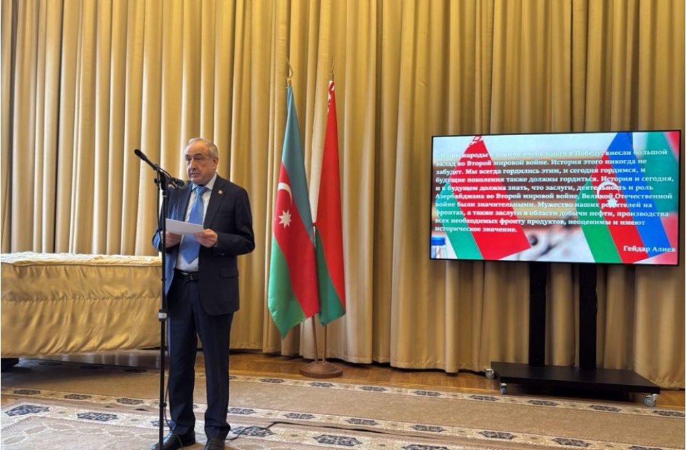 Tədbirdə çıxış edən Azərbaycanın Belarusdakı səfiri Məhərrəm Əliyev Azərbaycan xalqının İkinci Dünya müharibəsində qələbəyə verdiyi mühüm töhfədən bəhs edib. O xatırladıb ki, Azərbaycandan cəbhəyə təxminən 700 minə yaxın insan yollanıb, onlardan 350 mindən çoxu geri qayıtmayıb. Müharibə dövründə göstərdikləri qəhrəmanlıq və şücaətə görə, 128 azərbaycanlı Sovet İttifaqı Qəhrəmanı adına layiq görülüb, onlardan 12-si Belarusun azad olunması uğrunda döyüşlərdə fərqlənib. 15 azərbaycanlı “Şöhrət” ordeninin bütün dərəcələri ilə təltif olunub. 170 mindən çox əsgər və zabitimiz müxtəlif orden və medallarla təltif olunub.