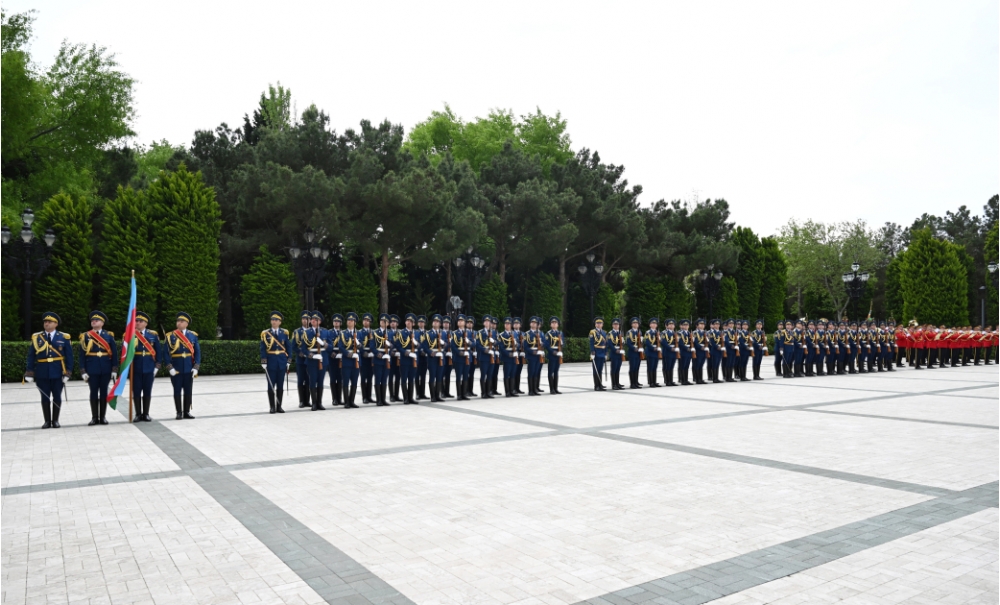 Fəxri qarovul dəstəsi hərbi marşın sədaları altında Azərbaycan Prezidenti İlham Əliyevin və İran Prezidenti Məsud Pezeşkianın qarşısından keçdi.