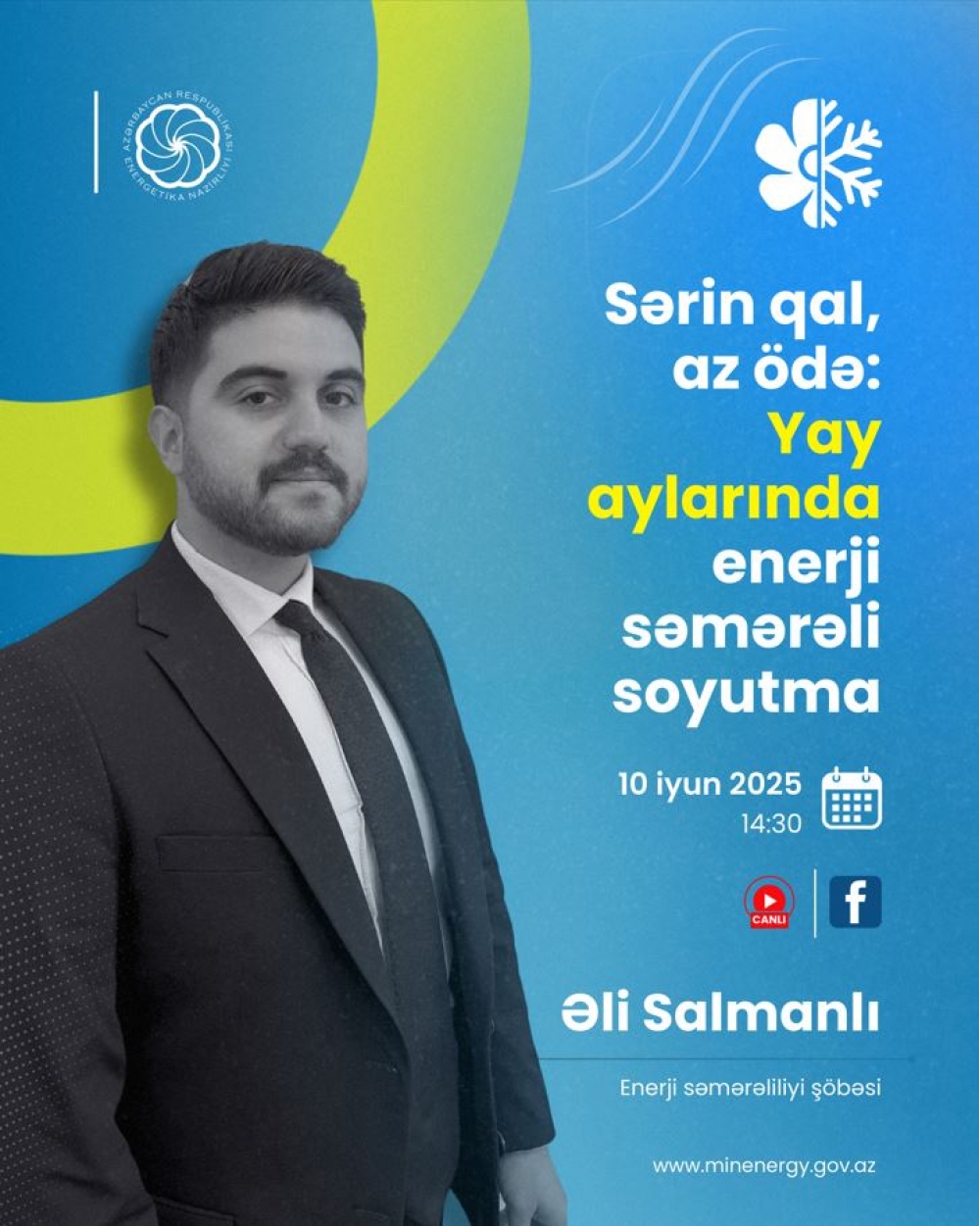 İyunun 10-da Energetika Nazirliyinin təşkilatçılığı ilə “Sərin qal, az ödə: Yay aylarında enerji səmərəli soyutma” mövzusunda vebinar keçiriləcək.
