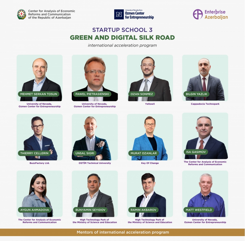 İqtisadi İslahatların Təhlili və Kommunikasiya Mərkəzinin operatoru olduğu “Enterprise Azerbaijan” portalının təşəbbüsü ilə həyata keçirilən “Startup School 3” layihəsi çərçivəsində icra olunan “Yaşıl və Rəqəmsal İpək Yolu” (Green and Digital Silk Road) beynəlxalq akselerasiya proqramının ekspert heyəti təqdim olunub.