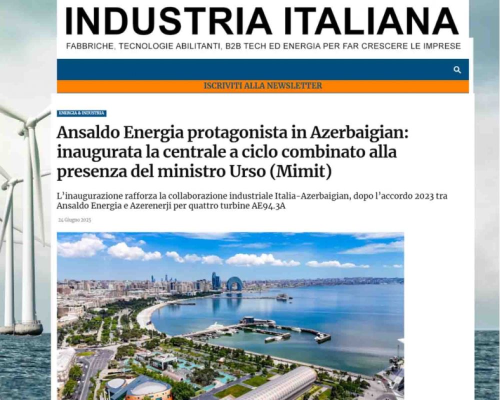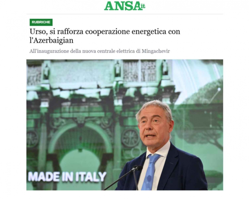 İtaliya mətbuatı Mingəçevirdə “8 Noyabr” Elektrik Stansiyasının açılış mərasimini diqqət mərkəzində saxlayıb.