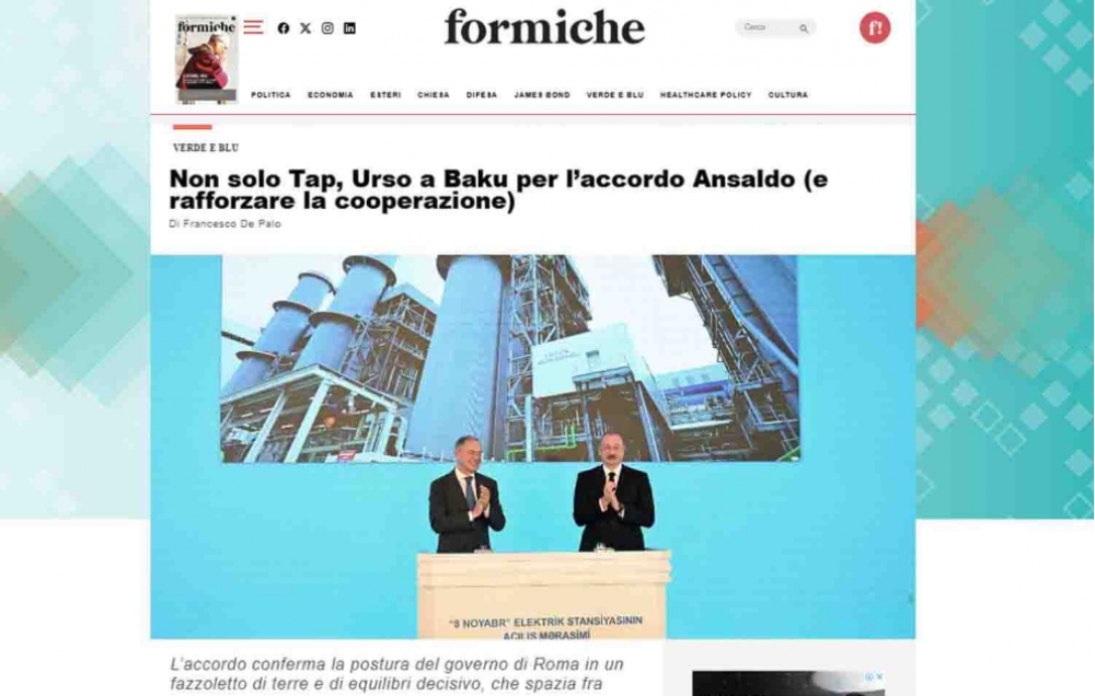 Yazılarda İtaliya ilə Azərbaycan, o cümlədən “Ansaldo Energia” və “AzərEnerji” arasındakı əməkdaşlıqdan bəhs olunur, COP29 çərçivəsində iki şirkətin anlaşma memorandumu imzaladığı xatırladılır. Həmçinin strateji əhəmiyyətə malik TAP boru kəmərindən və qaz kəmərinin ötürücülük gücünün ikiqat artırılmasının əhəmiyyətindən bəhs olunur, İtaliya ərazisindən Avropaya daxil olan Azərbaycan qazının 10 Avropa ölkəsinə çatdırıldığı bildirilir.