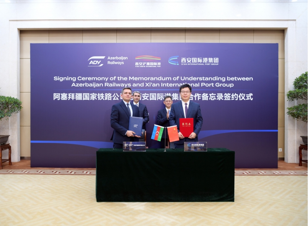 “Azərbaycan Dəmir Yolları” QSC (ADY) ilə Çinin “Xi'an Free Trade Port Construction and Operation Co., Ltd.” şirkəti (Sian Limanı) arasında Anlaşma Memorandumu imzalanıb.