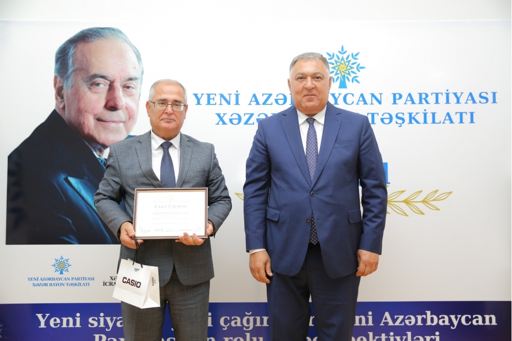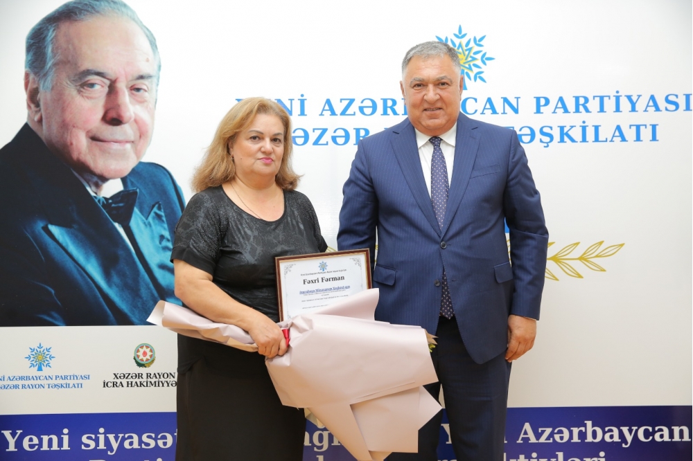 Sonda partiya sıralarına yeni qoşulan şəxslərə üzvlük vəsiqələri və rayonun ictimai-siyasi həyatında fəal iştirak edən bir qrup şəxsə fəxri fərman təqdim olunub.