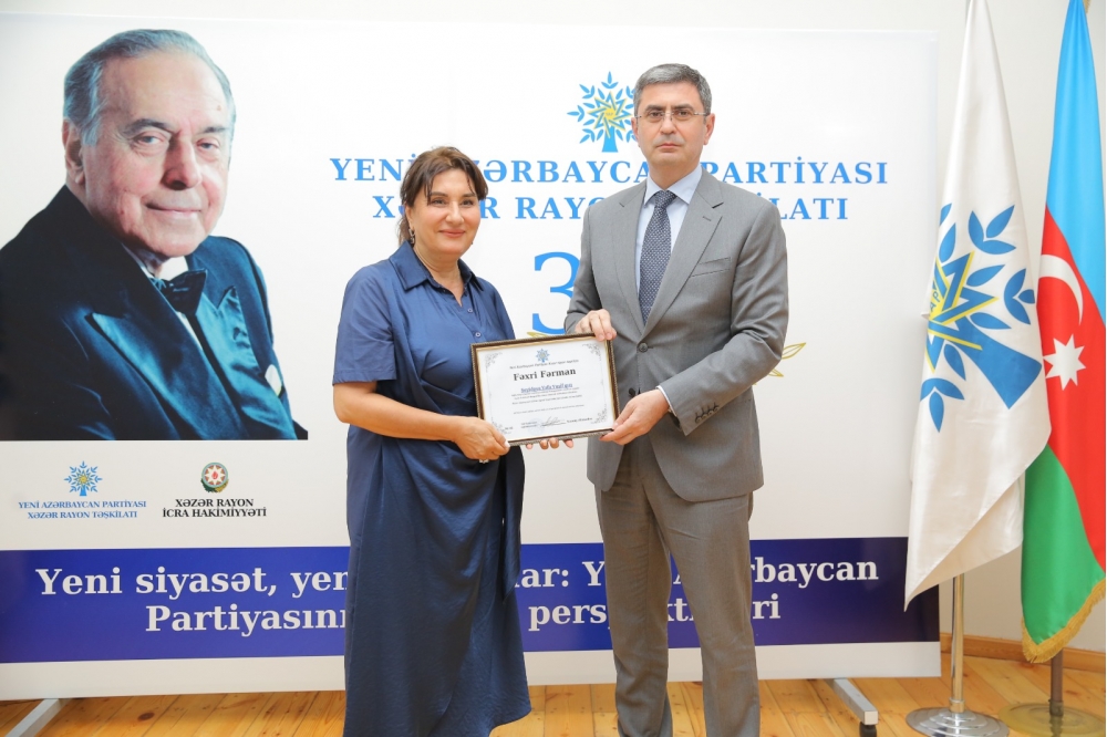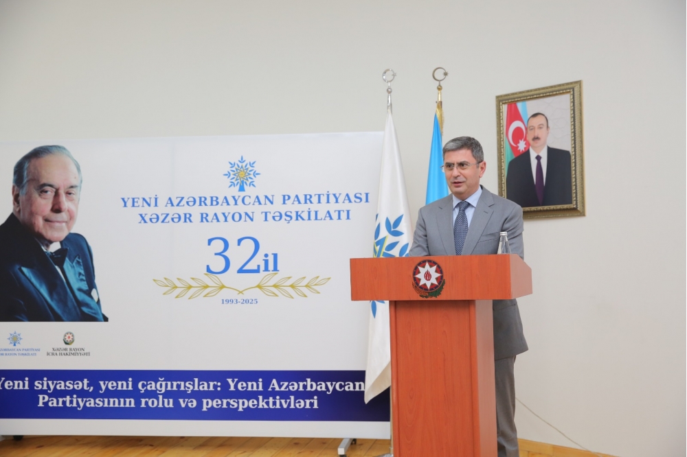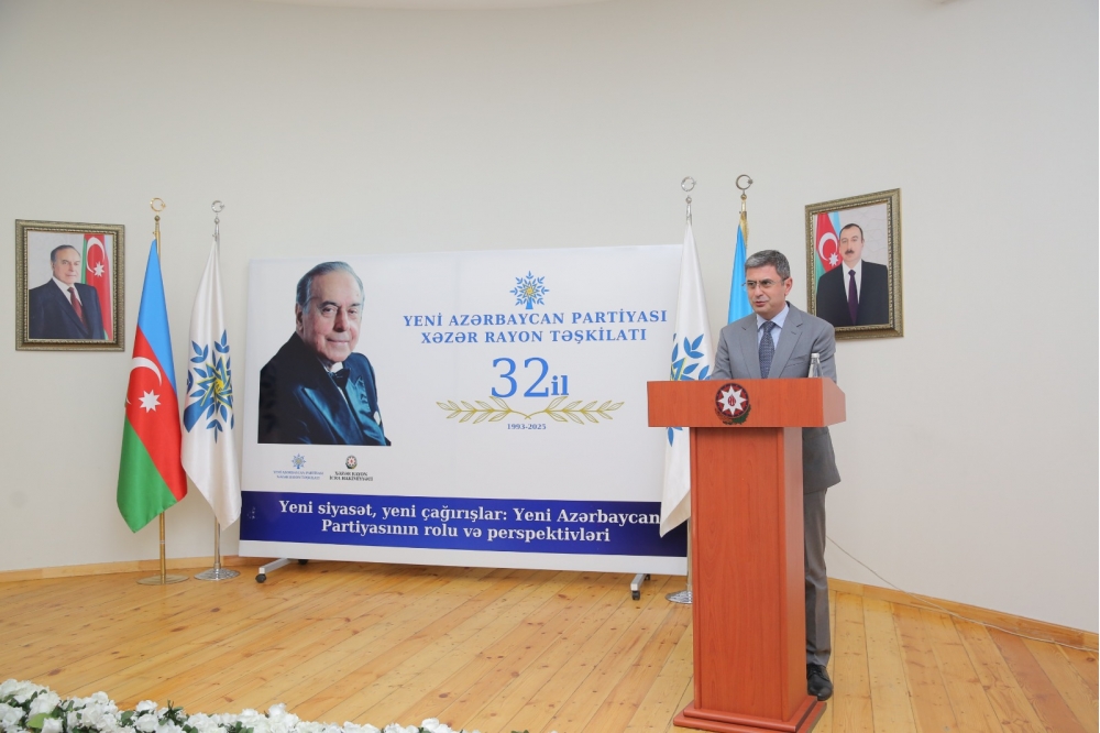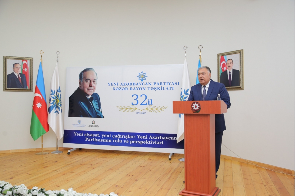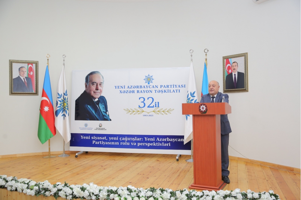 Tədbiri giriş sözü ilə açan YAP Xəzər təşkilatının sədri Namiq Əhmədov bildirib ki, ölkəmizin müstəqilliyini yenicə bərpa etdiyi, mürəkkəb ictimai-siyasi proseslərin cərəyan etdiyi bir dövrdə Yeni Azərbaycan Partiyasının yaradılması xalqın sabitlik, inkişaf və milli həmrəylik arzularının təcəssümü idi. Bu mühüm addımın davamı olaraq, 1993-cü ilin iyul ayında YAP Xəzər rayon təşkilatının təsis konfransı keçirilmiş və bununla da təşkilat rəsmi olaraq fəaliyyətə başlamışdır. 32 il ərzində YAP Xəzər rayon təşkilatı öz ətrafında 8 minə yaxın üzvü birləşdirərək rayonun ictimai-siyasi həyatında fəal mövqe nümayiş etdirmiş, ölkədə həyata keçirilən siyasi kursun rayon səviyyəsində dəstəklənməsi və təşviqi istiqamətində mühüm rol oynamışdır. Hazırda təşkilatın tərkibində 85 ərazi partiya təşkilatı fəaliyyət göstərir. Bu strukturlar rayonun bütün yaşayış sahələrini və əhalinin müxtəlif təbəqələrini əhatə edir. Bu, həm təşkilatın geniş sosial bazaya malik olduğunu, həm də partiyanın cəmiyyətdəki nüfuzunun yüksək səviyyədə olduğunu göstərir.