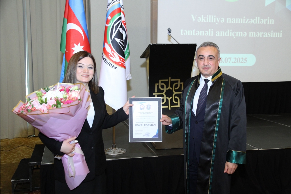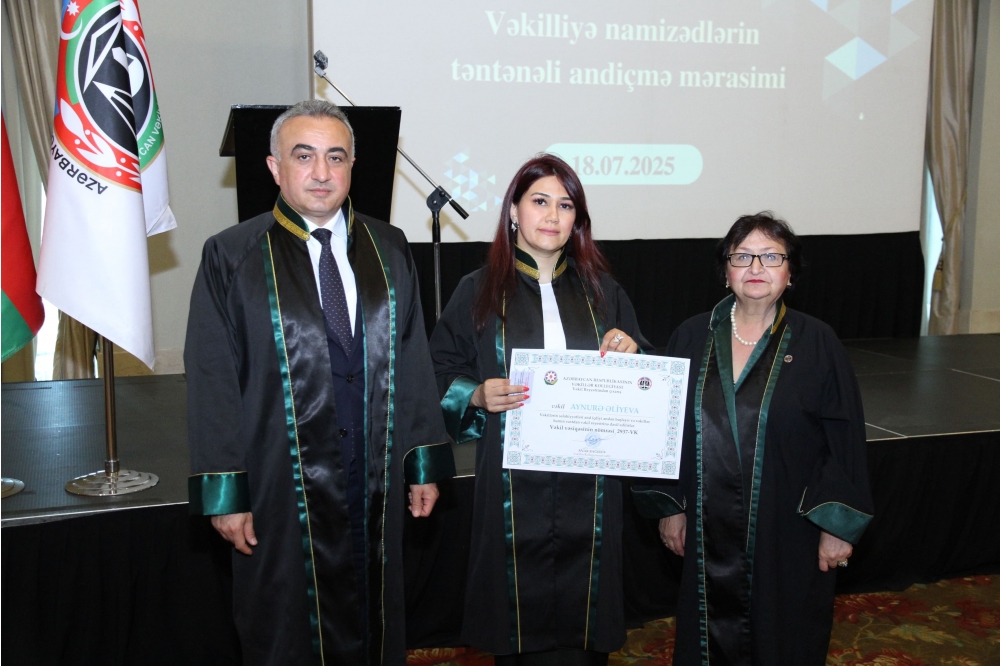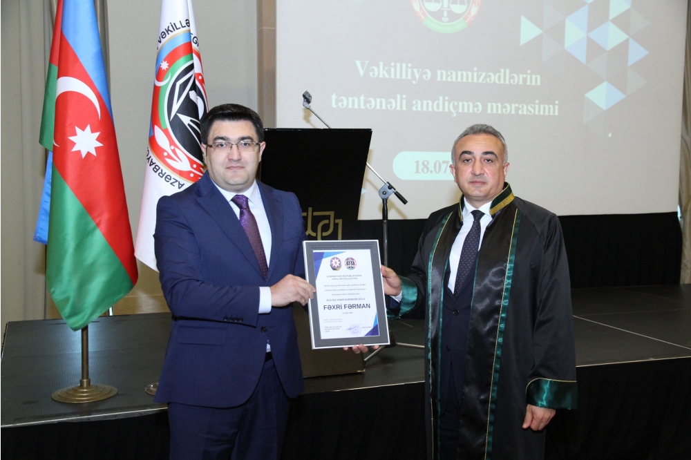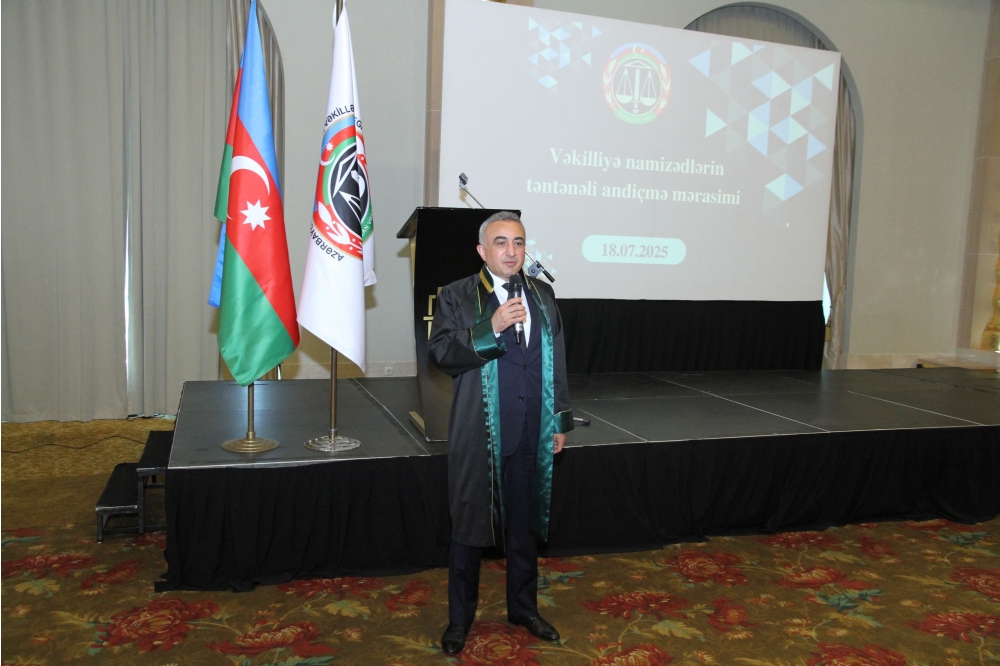 Tədbirdə vəkilliyə qəbul üzrə ixtisas imtahanlarını müvəffəqiyyətlə keçmiş, icbari təlim mərhələsini uğurla tamamlamış və şifahi müsahibədən müsbət nəticə ilə keçən namizədlərin andiçmə mərasimi təşkil olunub. Namizədlər Azərbaycanın Dövlət Bayrağı önündə təntənəli şəkildə and içərək vəkil peşəsinin şərəflə və məsuliyyətlə daşıyacaqlarına dair öhdəlik götürüblər.